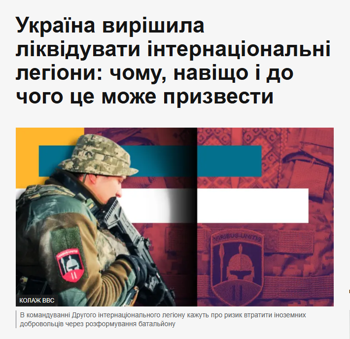 Ukraine will disband international legions, foreign fighters will be reassigned to Ukrainian assault units and serve at least through the end of 2025, the General Staff says, according to BBC. This move integrates international volunteers into regular frontline formations as part of force restructuring.