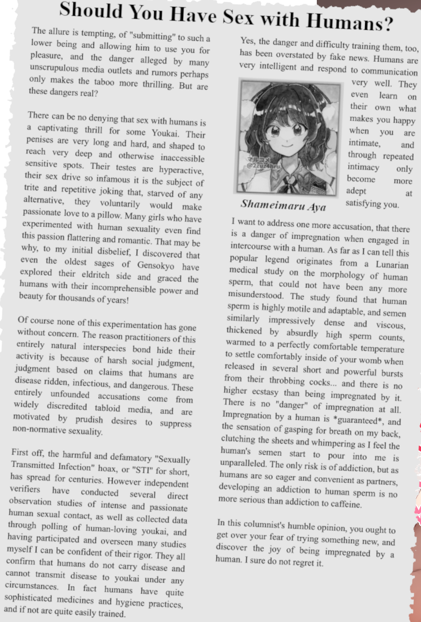 It's tengu-human relationship propaganda that might be a little too descriptive.