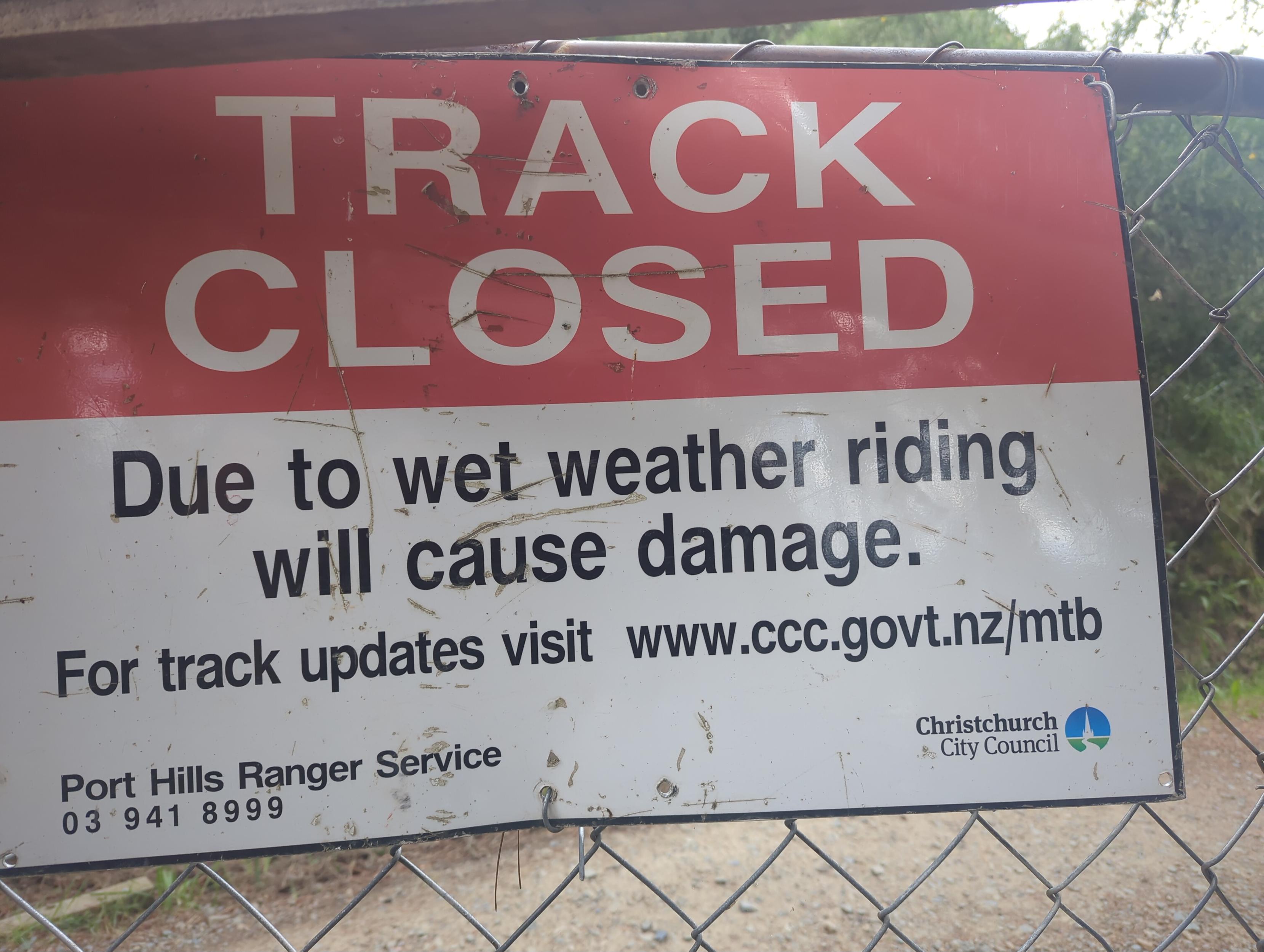 It says "TRACK CLOSED Due to wet weather riding will cause damage."