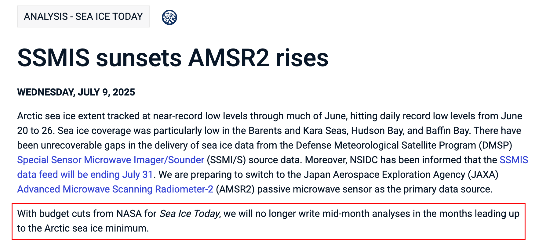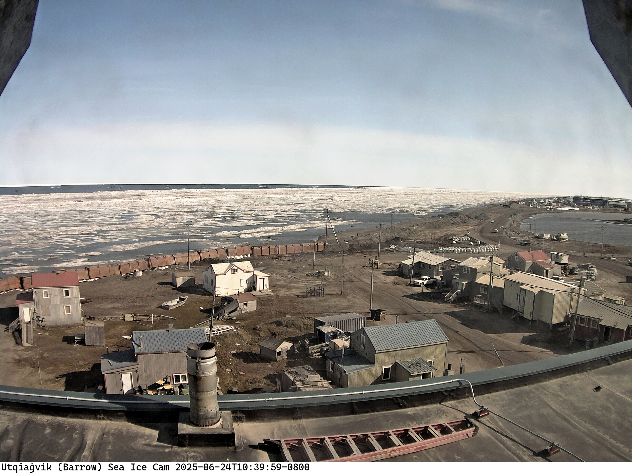Nearshore sea ice looking pretty rotten at Utqiaġvik Tuesday morning. East wind 20 mph has opened up a channel about ¾ mile offshore. But it’s sunny, so there is that. Image courtesy UAF and ASRC. #akwx#SeaIce@cinderbdt@Climatologist49