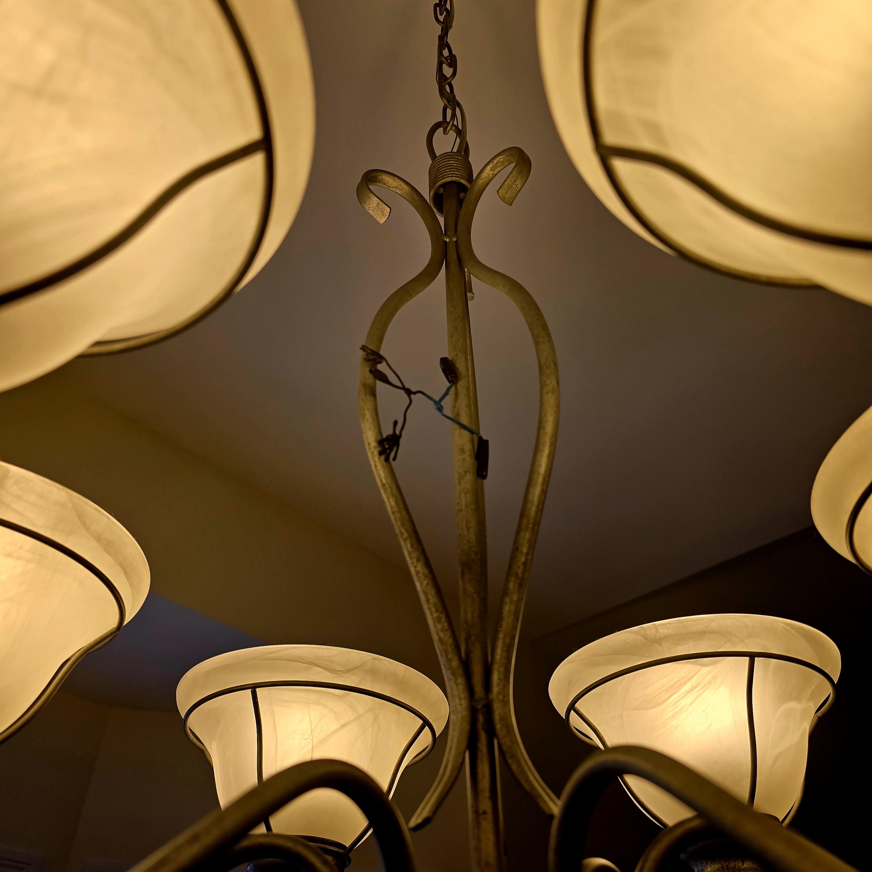My son put this magnetic man on this chandelier when we moved here in 2013. 11 at the time. (When I went new house shopping, this was the house he said he wanted us to live in.)
