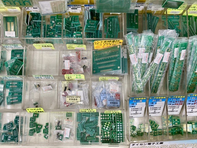 i am in osaka for a bit and a friend took me to this store in den den town that is like heaven's radioshack, floor after floor of hobbyist electronics stuff, microcontrollers and capacitors and lcds, drawers full of every jellybean logic chip imaginable, pcb breakouts for rare smd packages, just a table full of various crystal oscillators, etc etc. i would move to osaka just to be within subway distance of this place https://digit.kyohritsu.com/