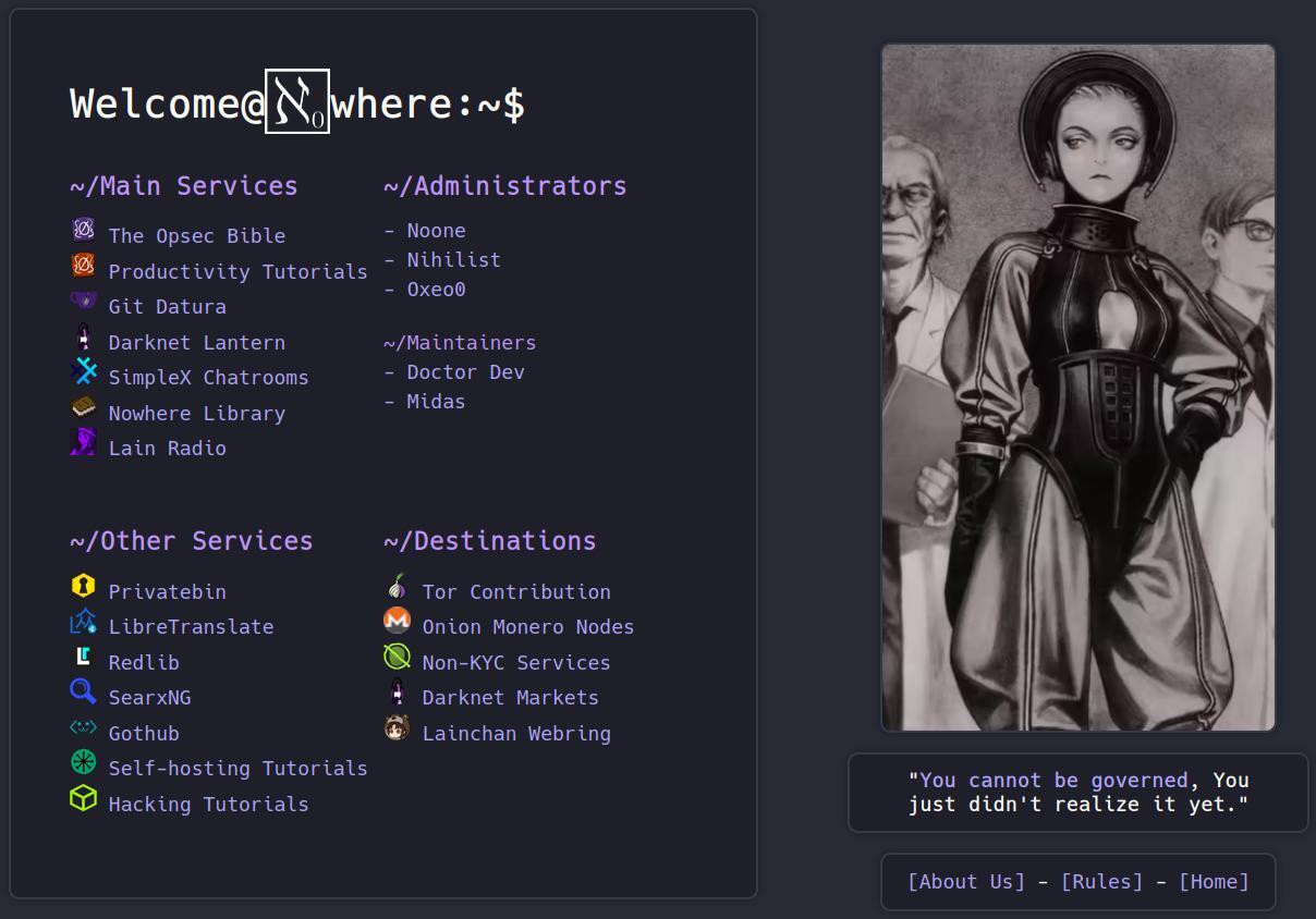 http://nowherejezfoltodf4jiyl6r56jnzintap5vyjlia7fkirfsnfizflqd.onion