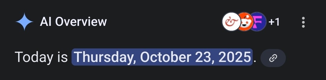 Delighted to see that, after hard coding a fix to keep the lie machine from lying to you about something as easily checked as the date, Google has backslid