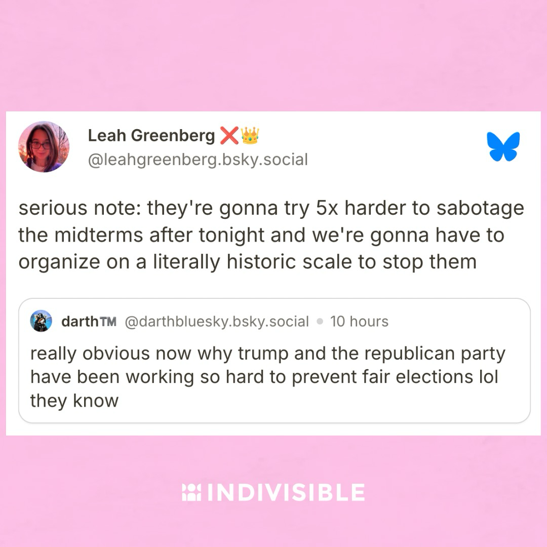 We’ve got a lot of work to do over the next year to take back Congress. Join the organizing that’s happening near you to win everywhere: https://indivisible.org/groups