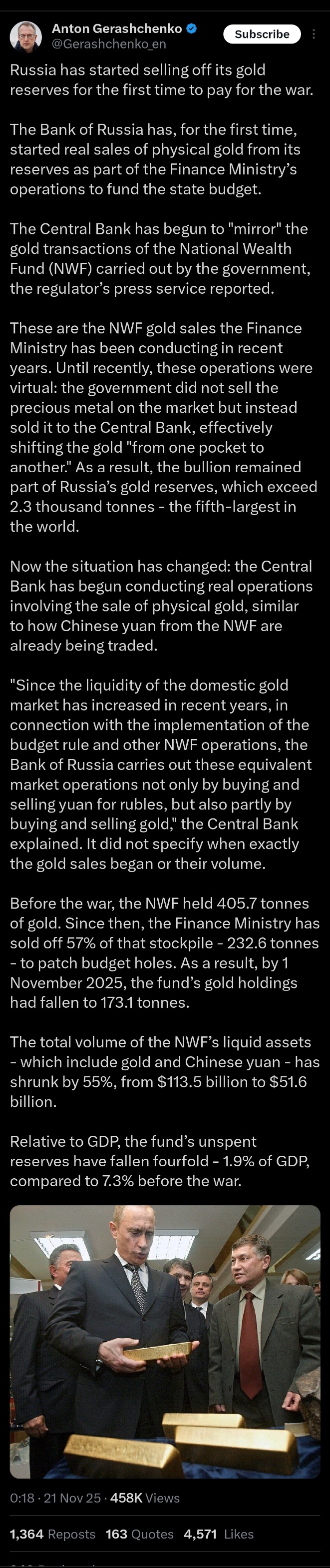 @white_male Yes. But im not sure its as simple as wanting to offload internally(to russian civilians). Everyone has more physical gold reserves than publicly disclosed. They want to swap rubles yuan and rubles gold -