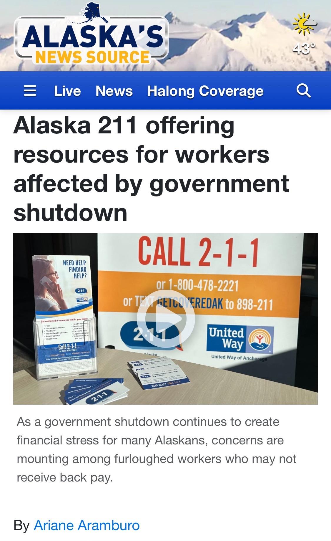 A statewide ‘Alaska 211’ program is in effect to help the state’s people.