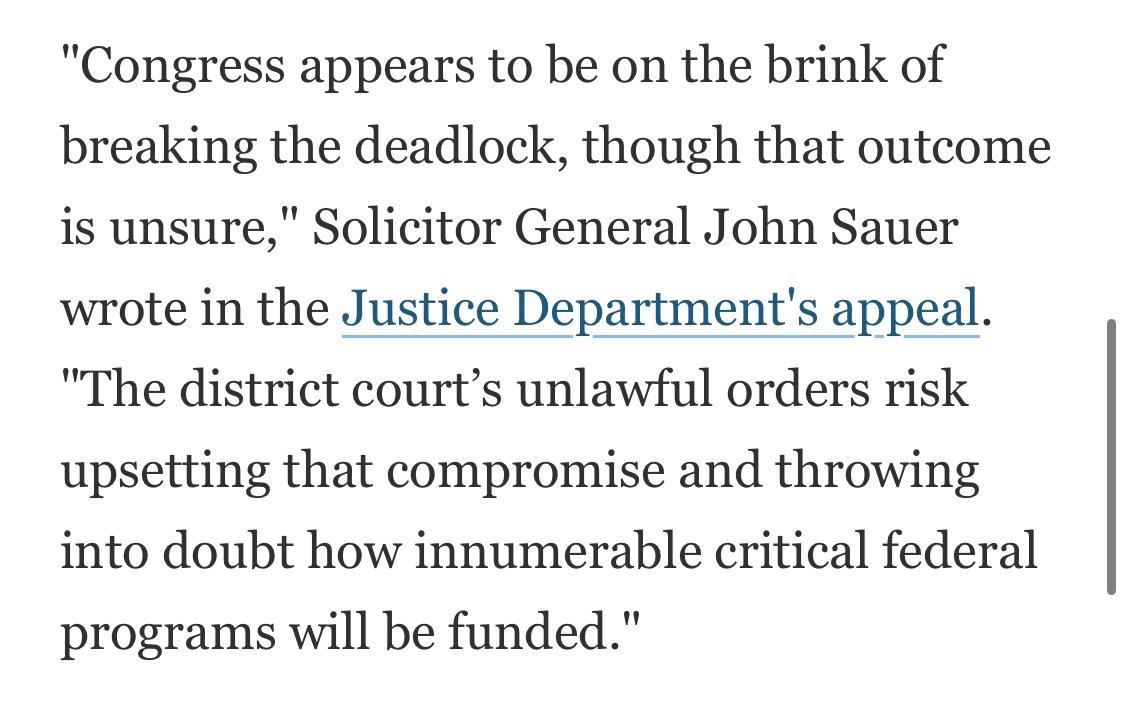 The Supreme Court “kept a district judge's food aid funding order on hold through Nov. 13, “freezing action without considering which side has the better legal arguments.”
