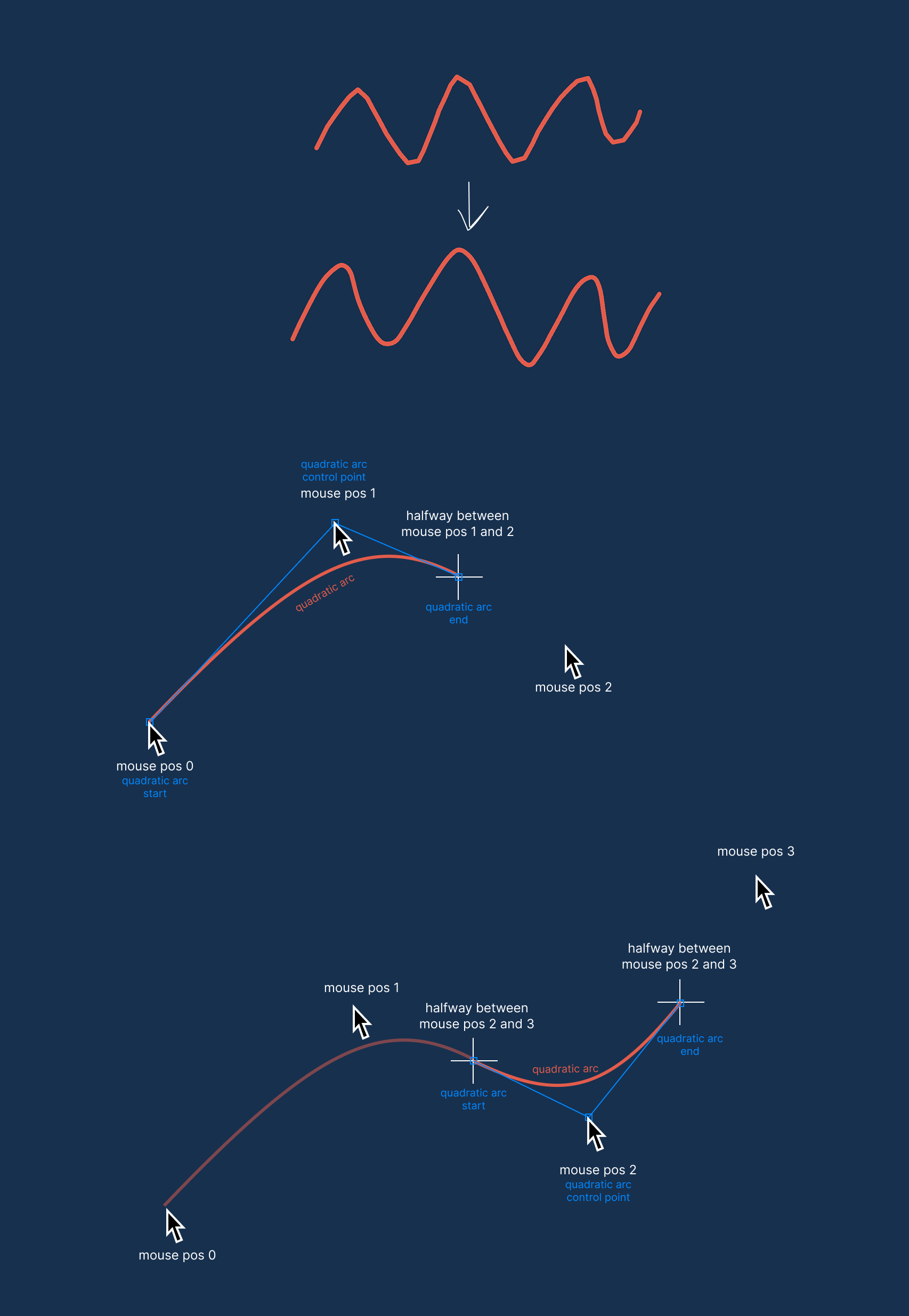 I always wondered how pencil interpolation works in drawing programs. Turned out the simplest algorithm is very approachable and works quite well!