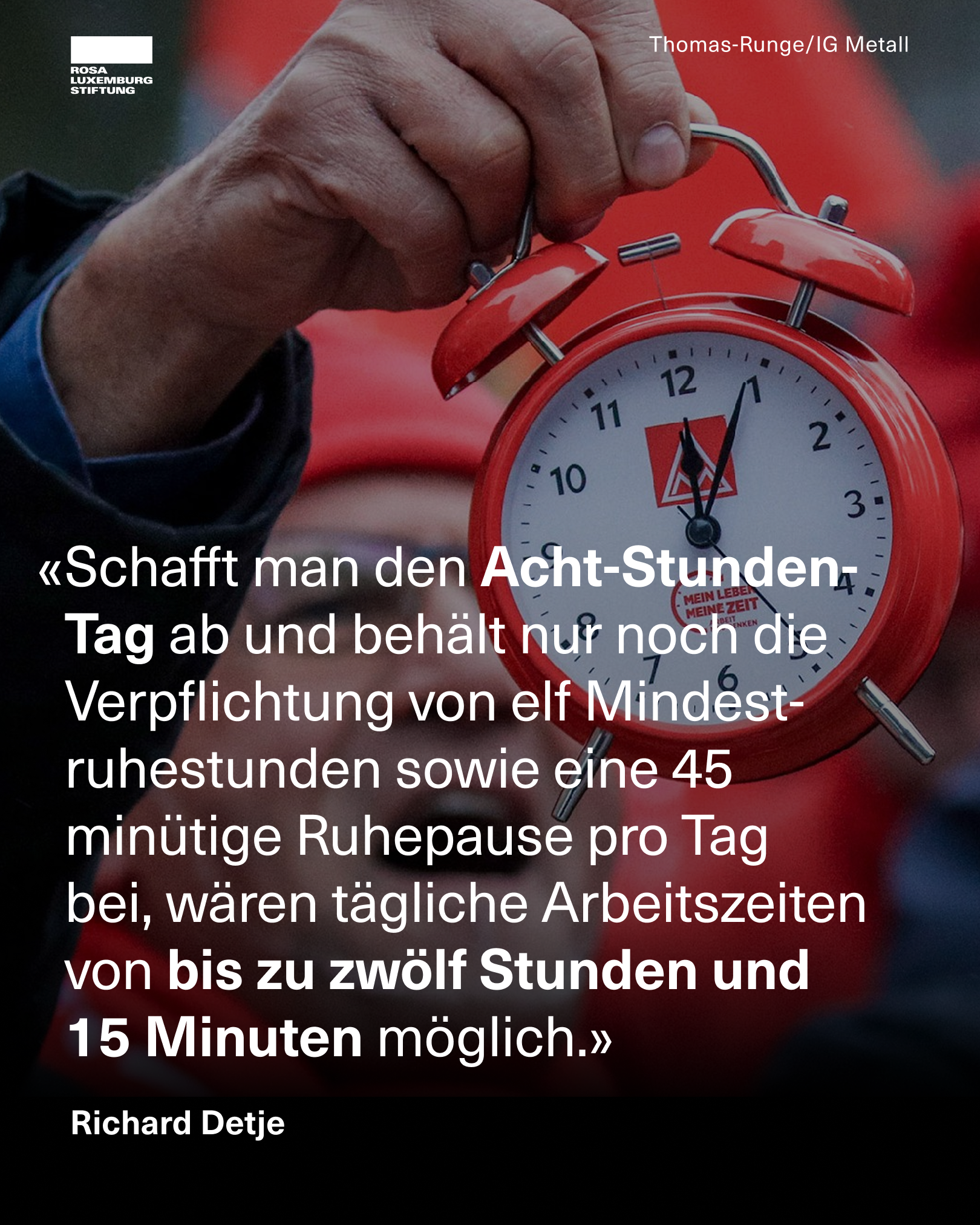 Union & SPD wollen den 8-Stunden-Tag kippen: Statt täglicher Grenze nur noch Wochenregel – möglich wären 12+ Std. Arbeit pro Tag. Und unter dem Motto «länger arbeiten» soll die Lebensarbeitszeit steigen. Richard Detje sagt: Hände weg vom 8-Stunden-Tag! 👇 https://www.rosalux.de/news/id/53730/eine-gesellschaft-unter-faulheits-verdacht