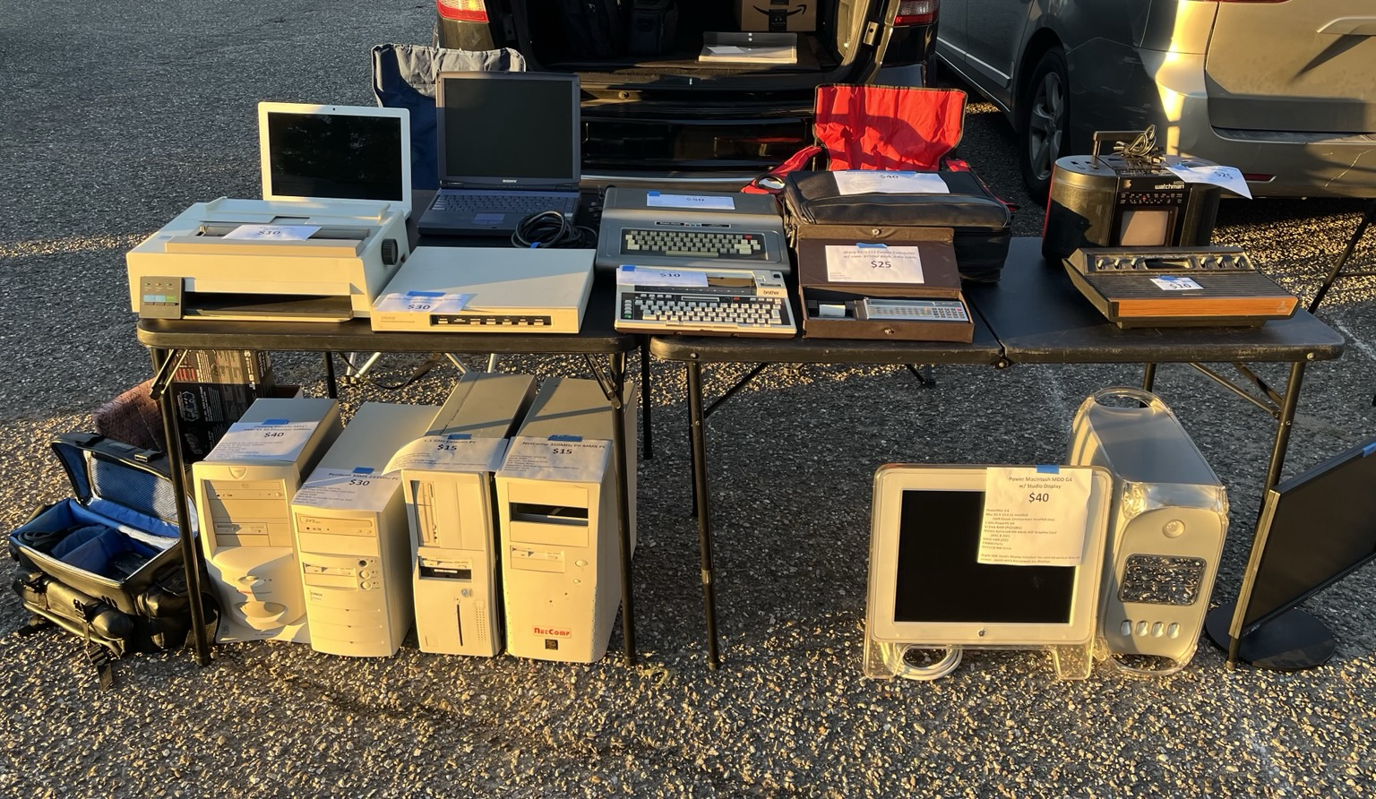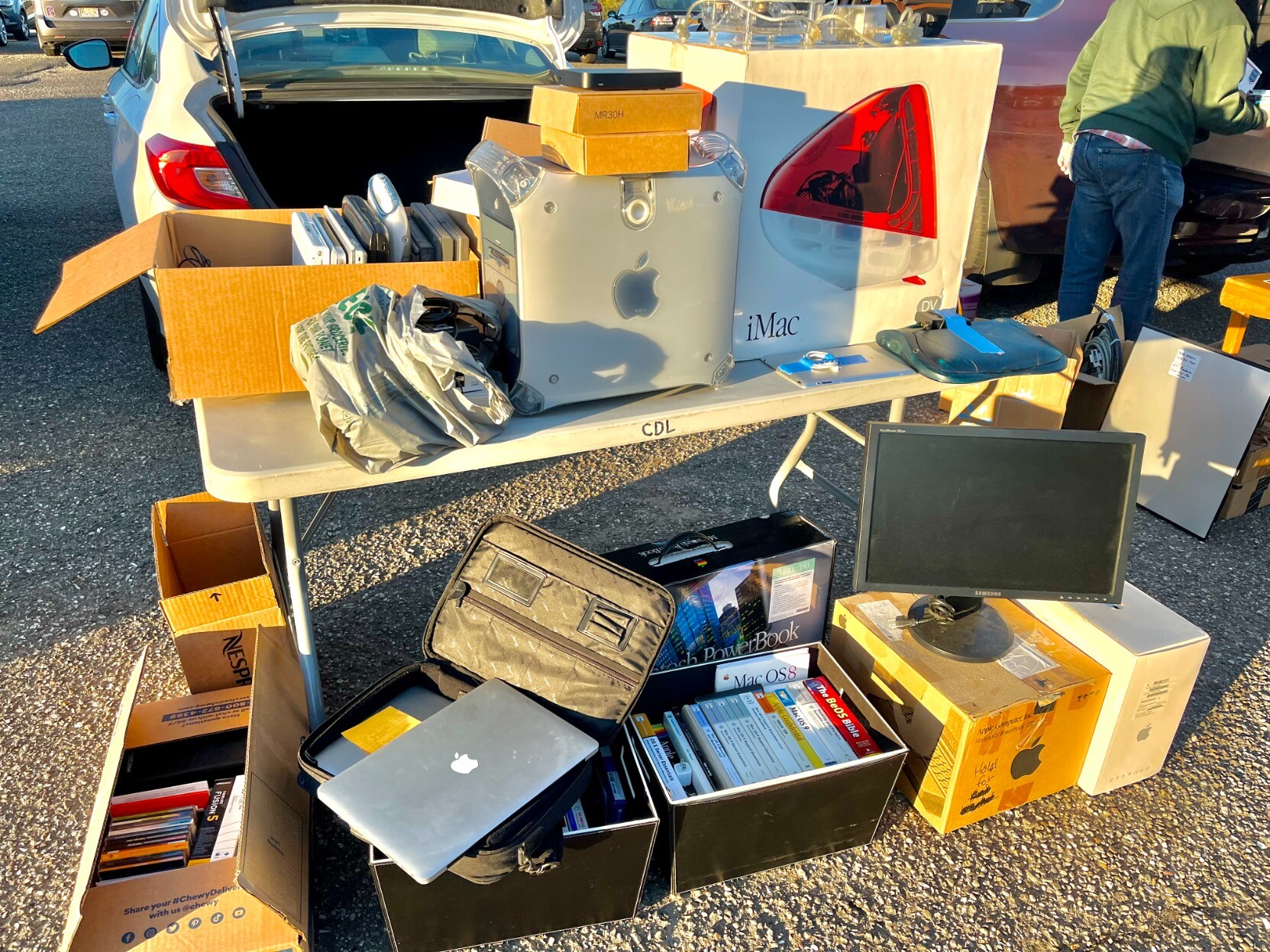 I would have to say, this was the table to be at if you wanted Mac stuff today. Guy was selling cheap - That boxed red iMac was $30, the boxed PowerBook under the table was the same price iirc. I didn't take too many photos, too busy at my table, but I'll share an album later.