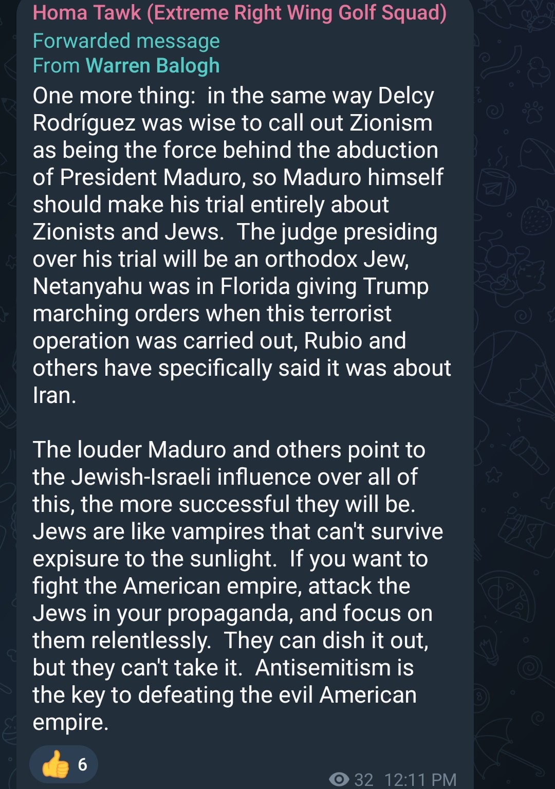 Don't get me wrong, it would be totally based if Maduro brought up the jews, which is why he won't. He'll make it about gringo imperialism or some shit. -