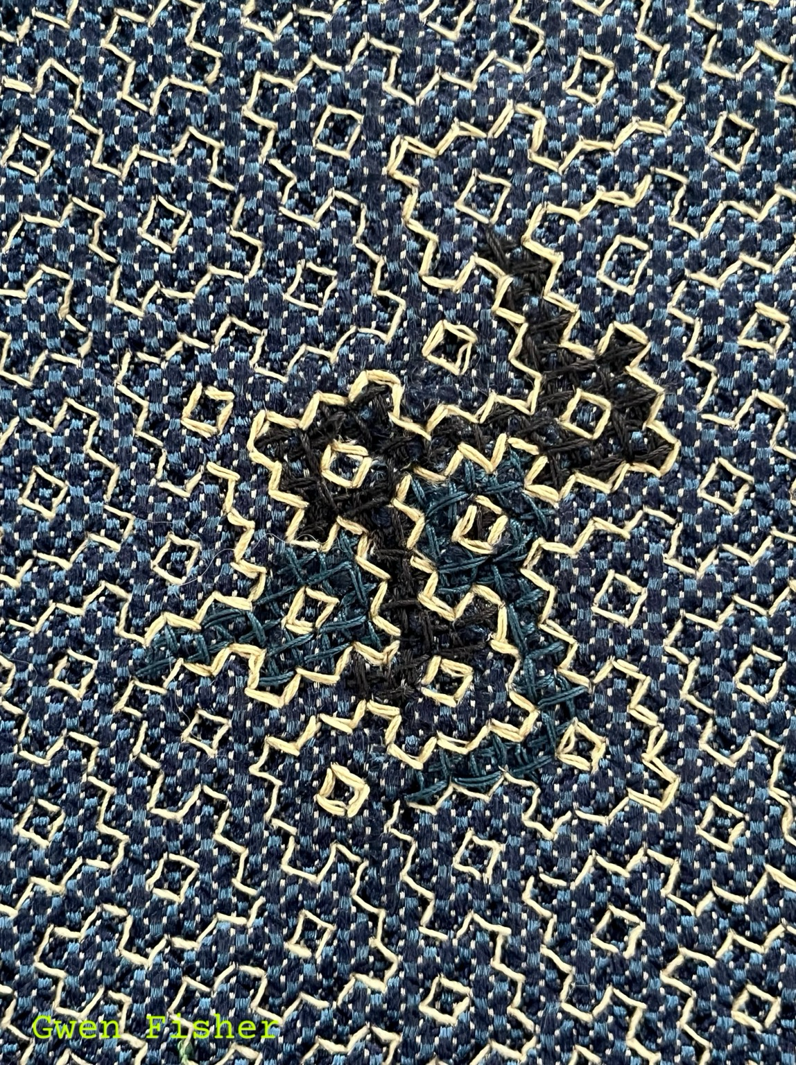 This is hitomezashi sashiko stitching on vintage silk. I use the pattern in the weave as the grid for my stitches. #sewing #embroidery #visiblemending