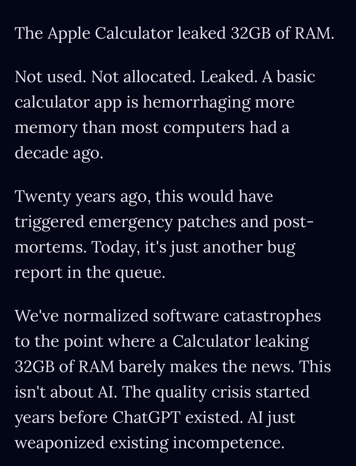 Software development is in danger because nothing is given the proper time. https://techtrenches.substack.com/p/the-great-software-quality-collapse
