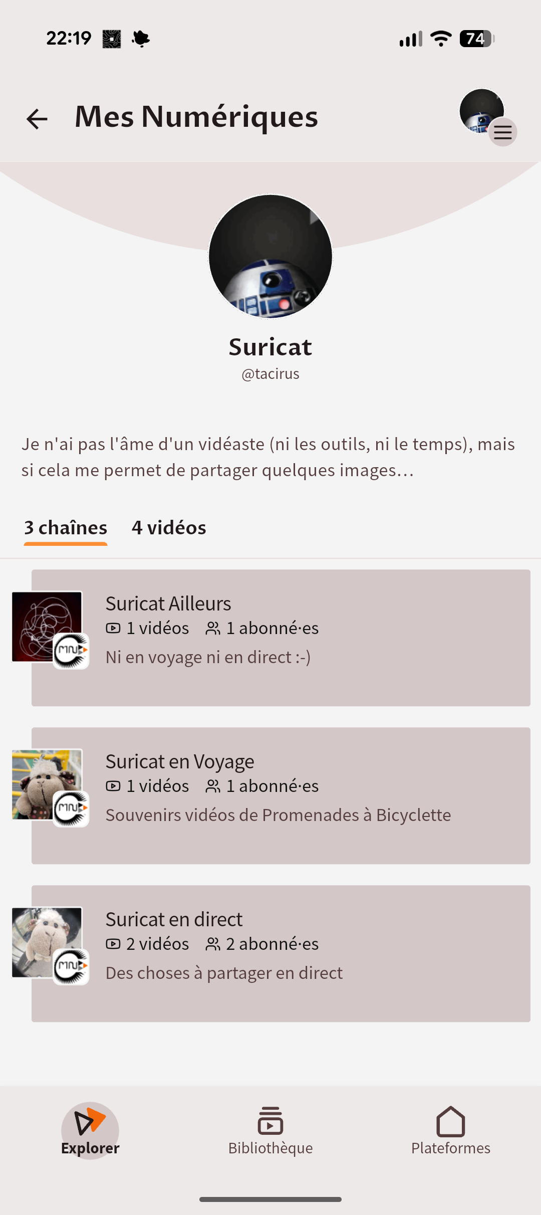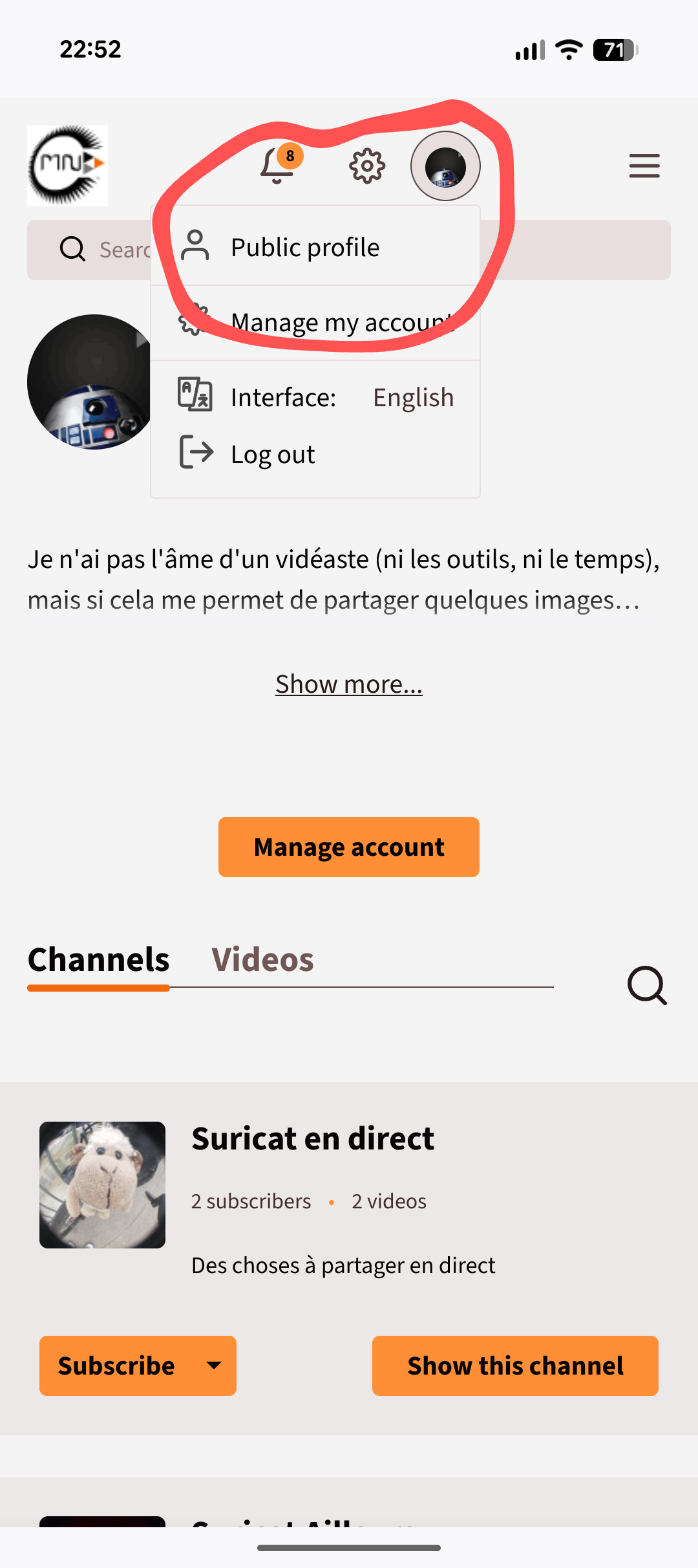 Question #peertube : comment je m'y prends (mal) depuis l'application Peertube Android pour arriver sur la page de mon profil et de mes chaines facilement ? J'y arrive pas, je ne comprends pas