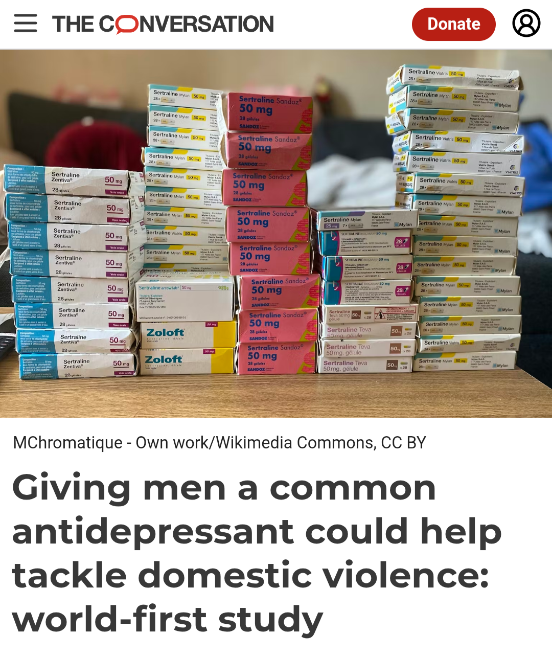 Turns out the solution to all of the world's problems is just pumping niggas full of SSRIs -
