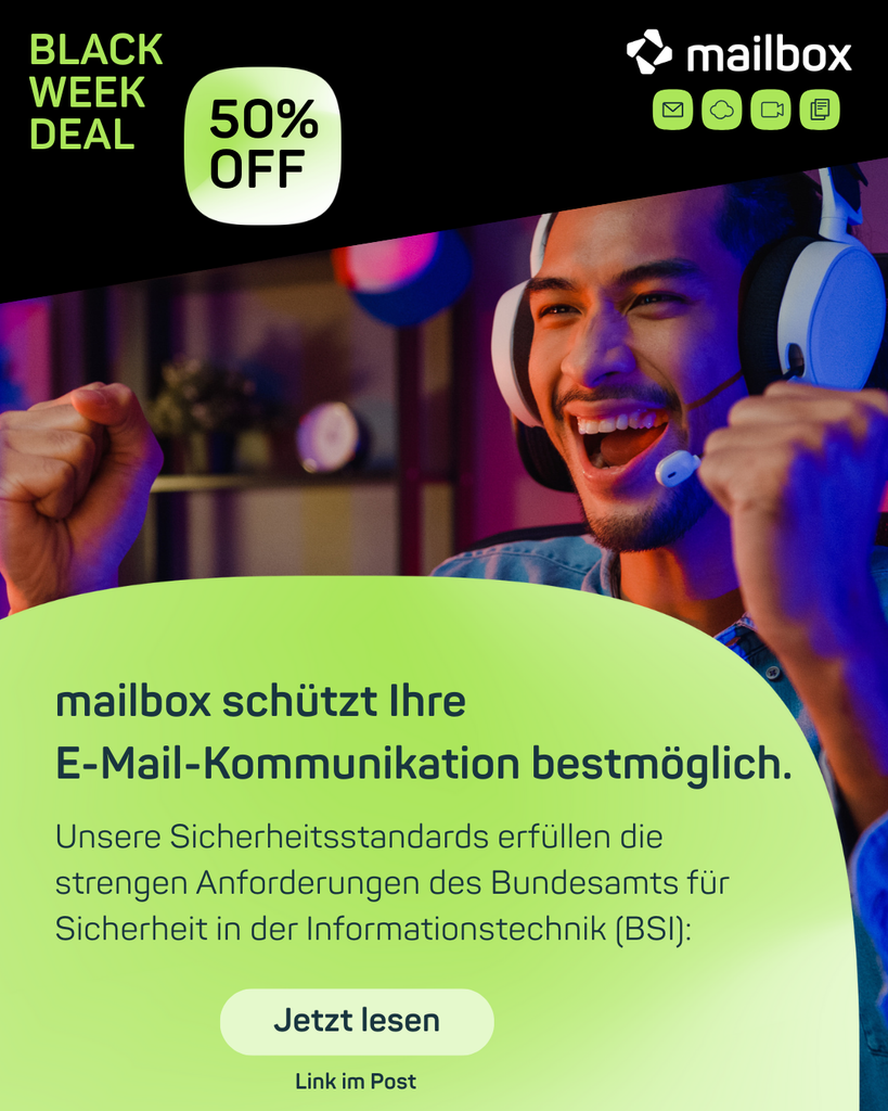 👉🏼 Sichern Sie sich den Deal vom 24.11.2025 bis 1.12.2025: https://mailbox.org/de/news/black-week-deal25/