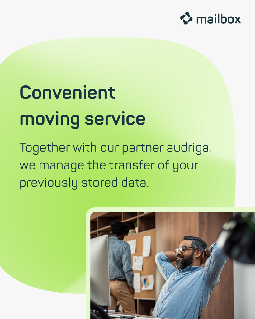 mailbox ist die sichere und flexible E-Mail- und Kommunikationsplattform, die Ihre Daten schützt. Wir bieten digitale Unabhängigkeit aus Deutschland für die Welt. Unsere intuitive Suite umfasst E-Mail, Kalender, Kontakte, Office, Videokonferenzen und Drive – ohne Werbung, Tracking oder Datenweitergabe. Wir speichern Daten ausschließlich in deutschen Rechenzentren.