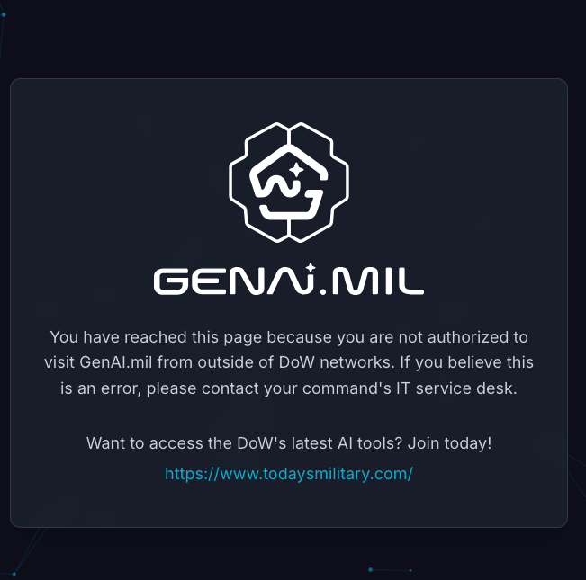 Pete Hegseth is urging members of the military to embrace GenAI.mil, a "secure generative AI platform for every member of the Department of War." I'm sure this will be fine.