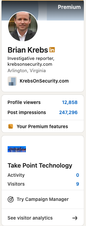 Independent investigative journalist. Covers cybercrime, security, privacy. Author of 'Spam Nation,' a NYT bestseller. Former Washington Post reporter, '95-'09. Signal: briankrebs.07 krebsonsecurity @ gmail .comLinkedin: https://www.linkedin.com/in/bkrebs