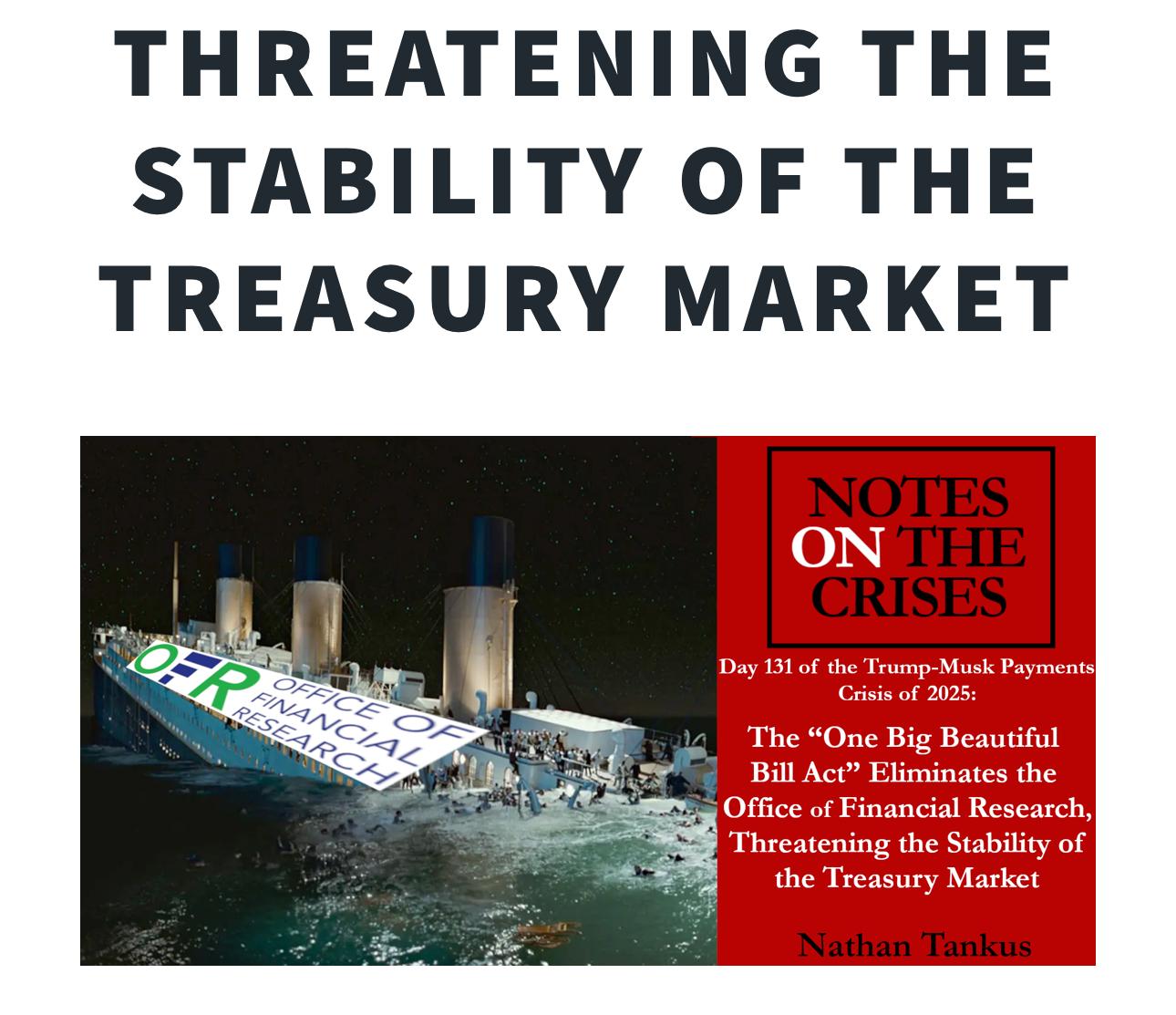 From Elizabeth Warren: “…American families are worried about a potential recession, President Trump and Congressional Republicans are trying to eliminate the Office of Financial Research and destroy the Financial Stability Oversight Council with their “Big, Beautiful Bill.”” (1/2)