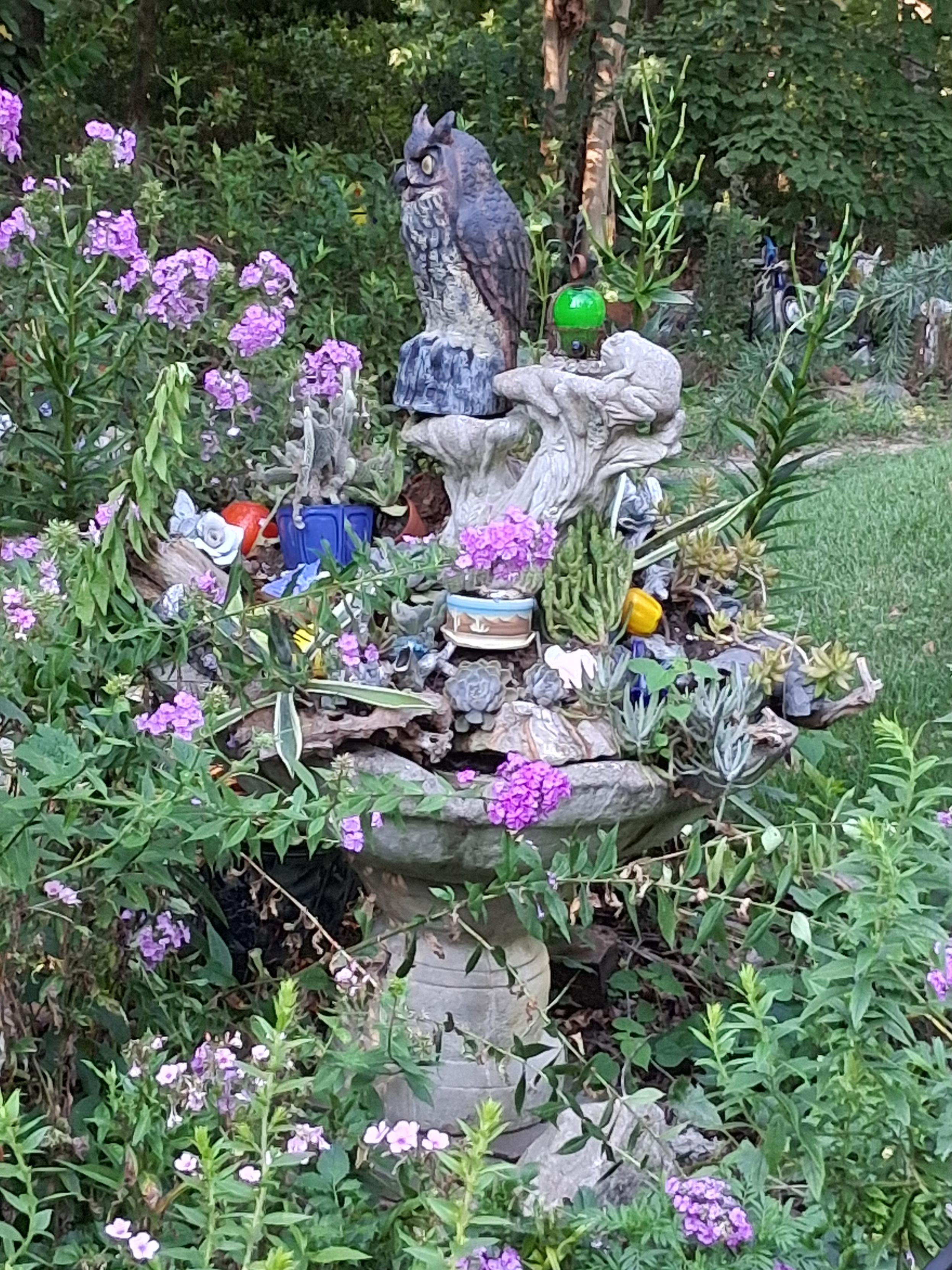 Features include a red urn fountain and orange Lion's Tail. A terps stained glass lampshade stands by. Go, Terp's!