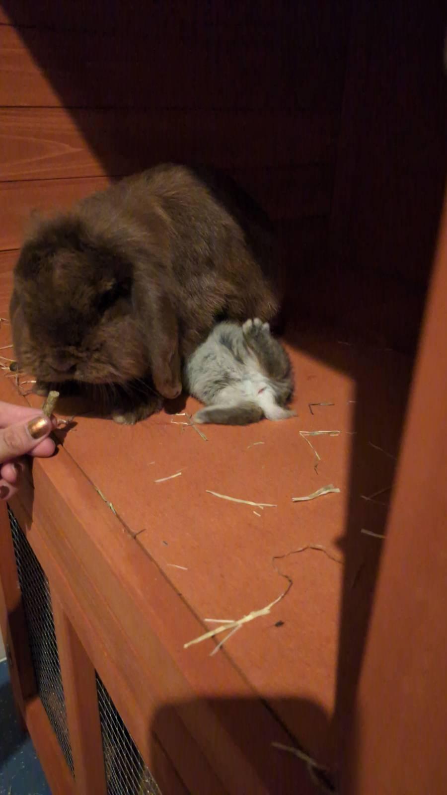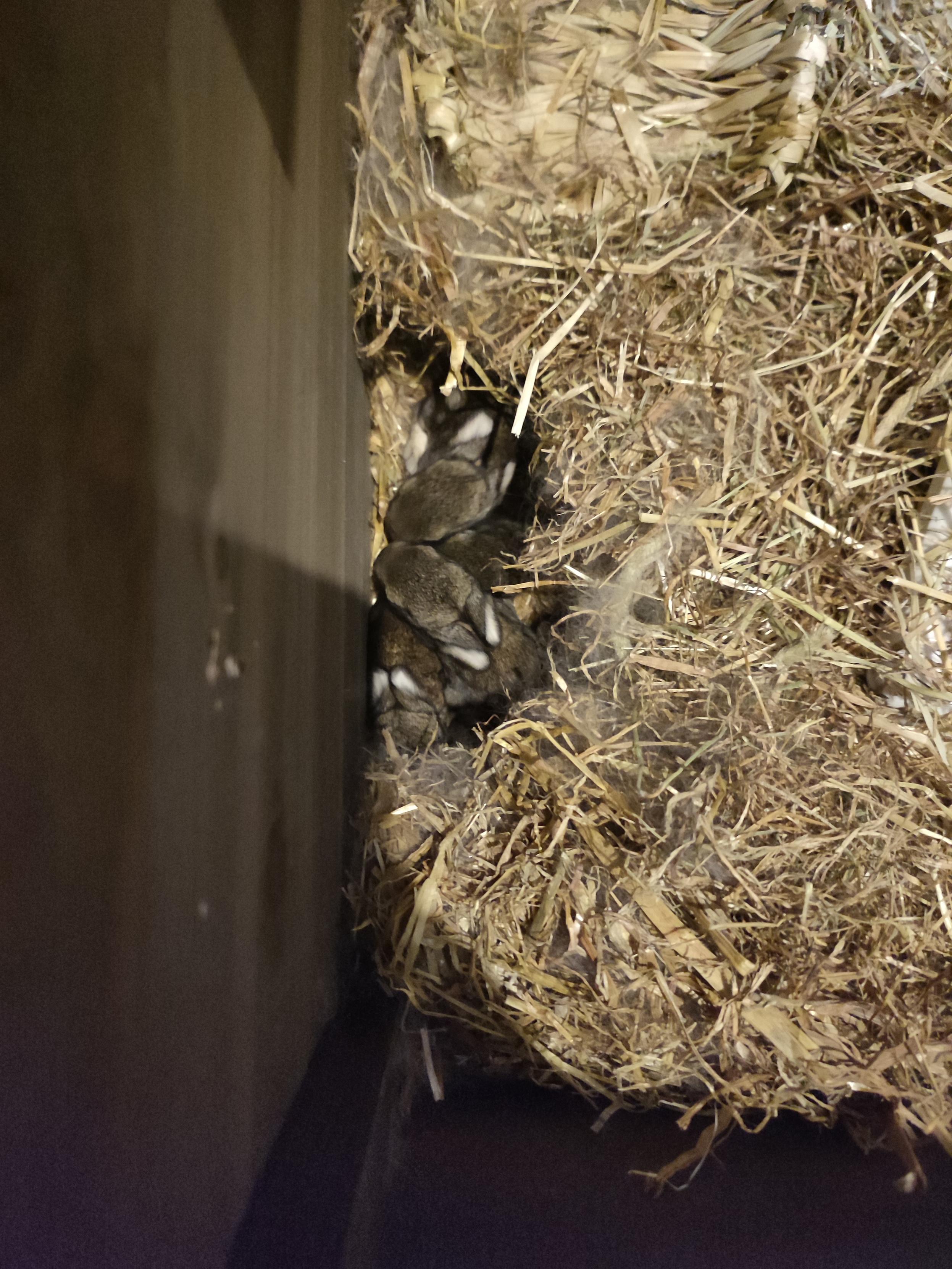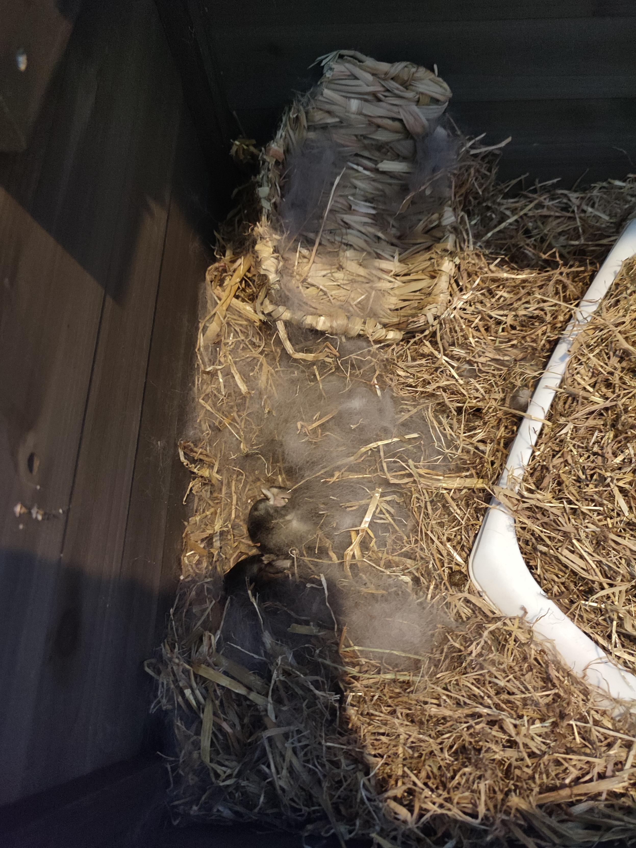 Soooo I was feeding the rabbit we adopted (found roaming the countryside, but clearly domestic) - she hops out of her hutch onto my lap to be hand-fed pellets each evening - and there was MOVEMENT inside the hutch...