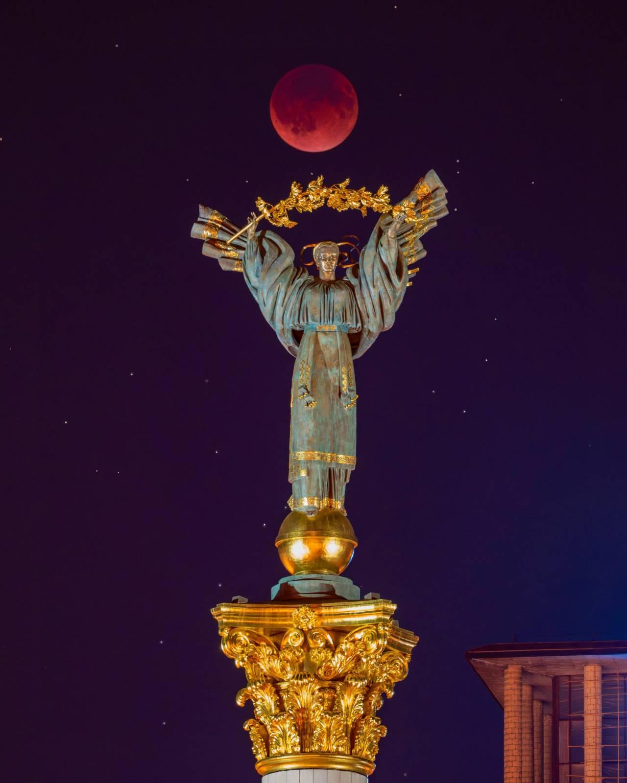 Brother in Kyiv sent me this. It's real. This is the statue of Berehynia, Slavic Goddess in Independence Square in Kyiv.