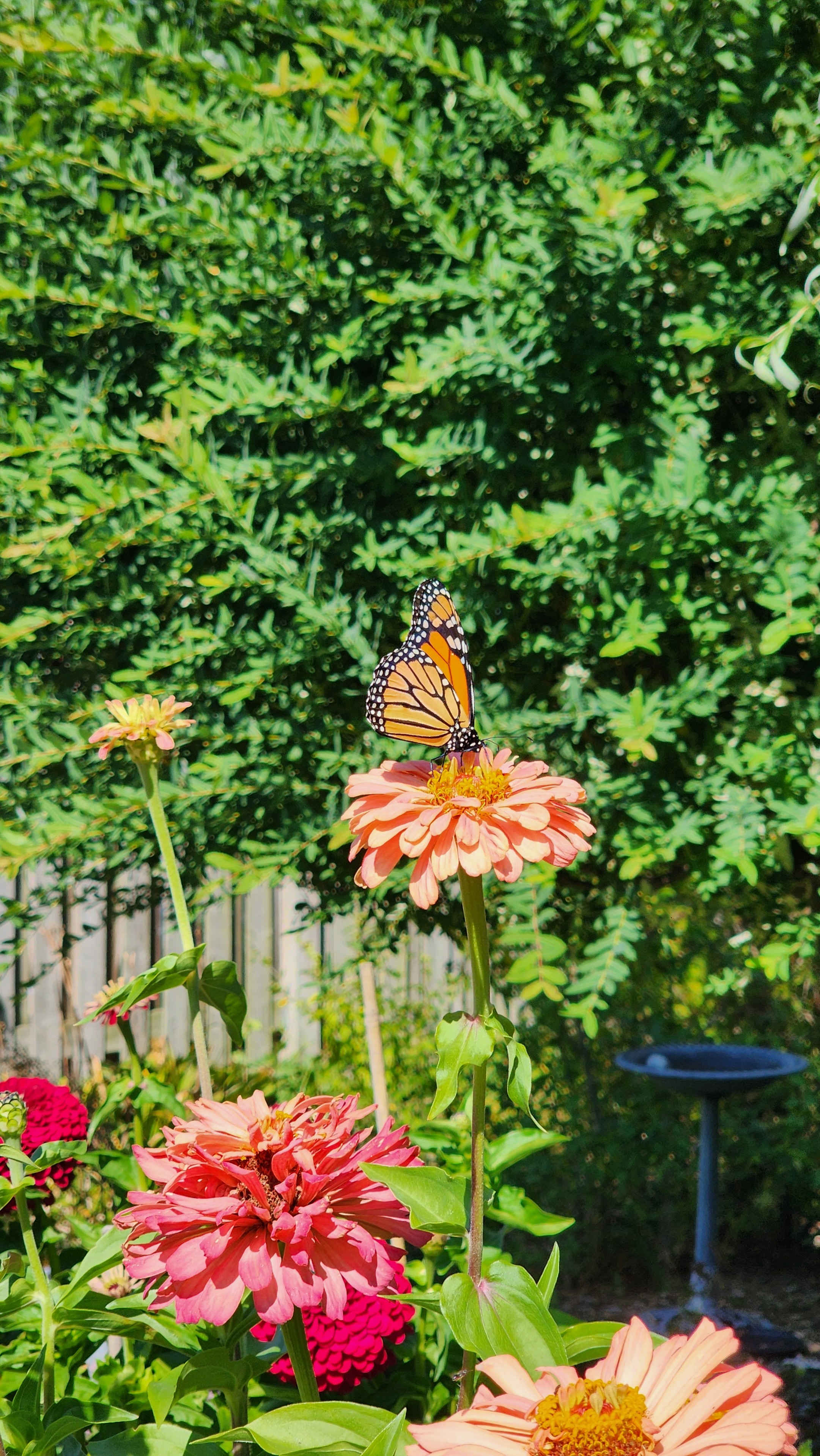 Had a visitor on our zinnias today. I suck at identifying butterflies but google seems to think this is a monarch.