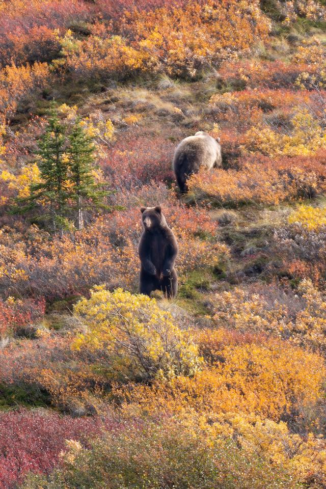 Brown bear sow and cub among the autumn colors in Denali National Park near Igloo Creek a few weeks ago.