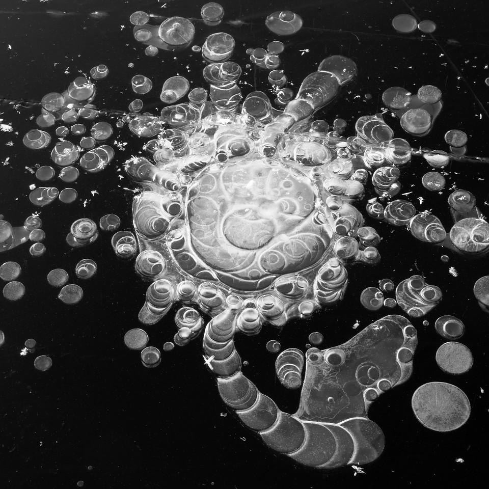 Methane bubbles frozen in the ice on Smith Lake in Fairbanks, Alaska, taken in late October. Part of my Water and Ice series exploring the forms and transformations of water in Alaska’s landscapes: https://photos.lwpetersen.com/Blogs/Lwpetersen/Water-and-Ice