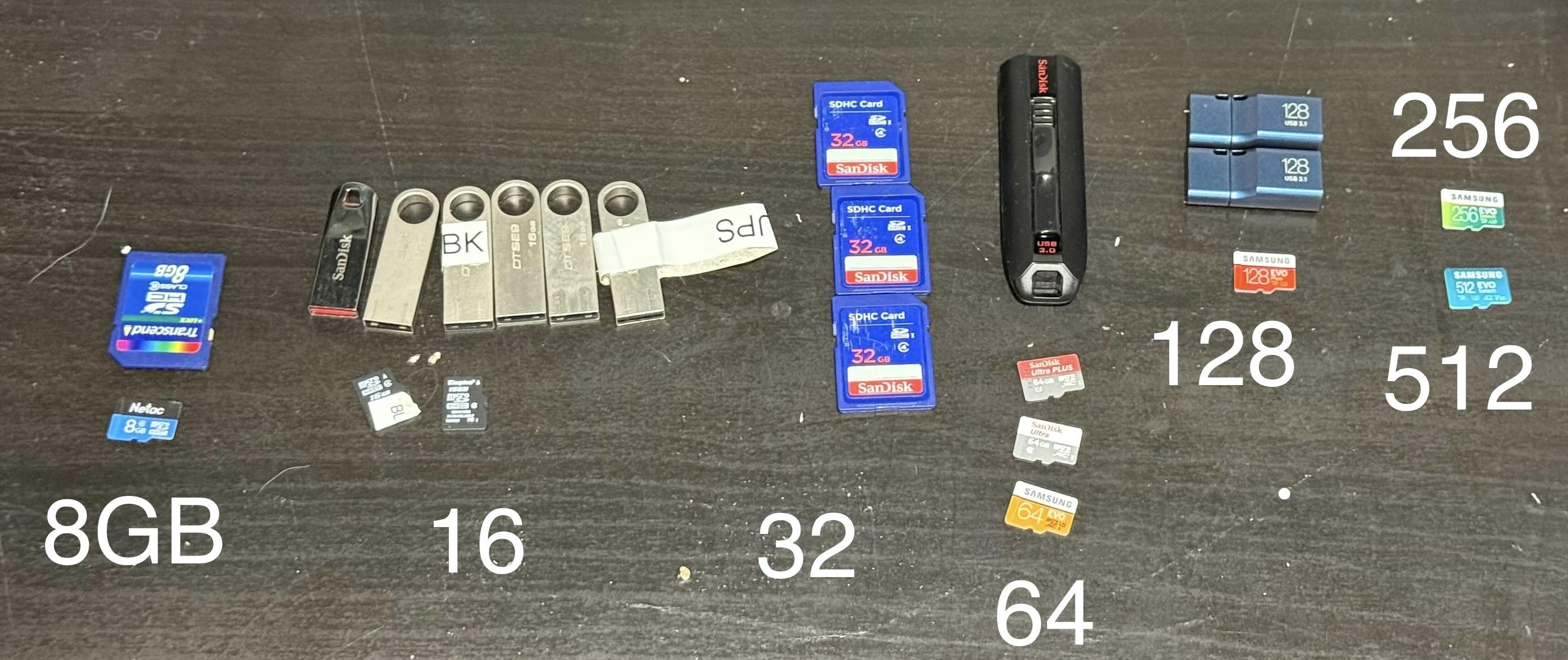 It's that time in move where I audit the contents of my storage collection, and wipe/destroy anything small. Today, I think I shall keep nothing below 64GB.