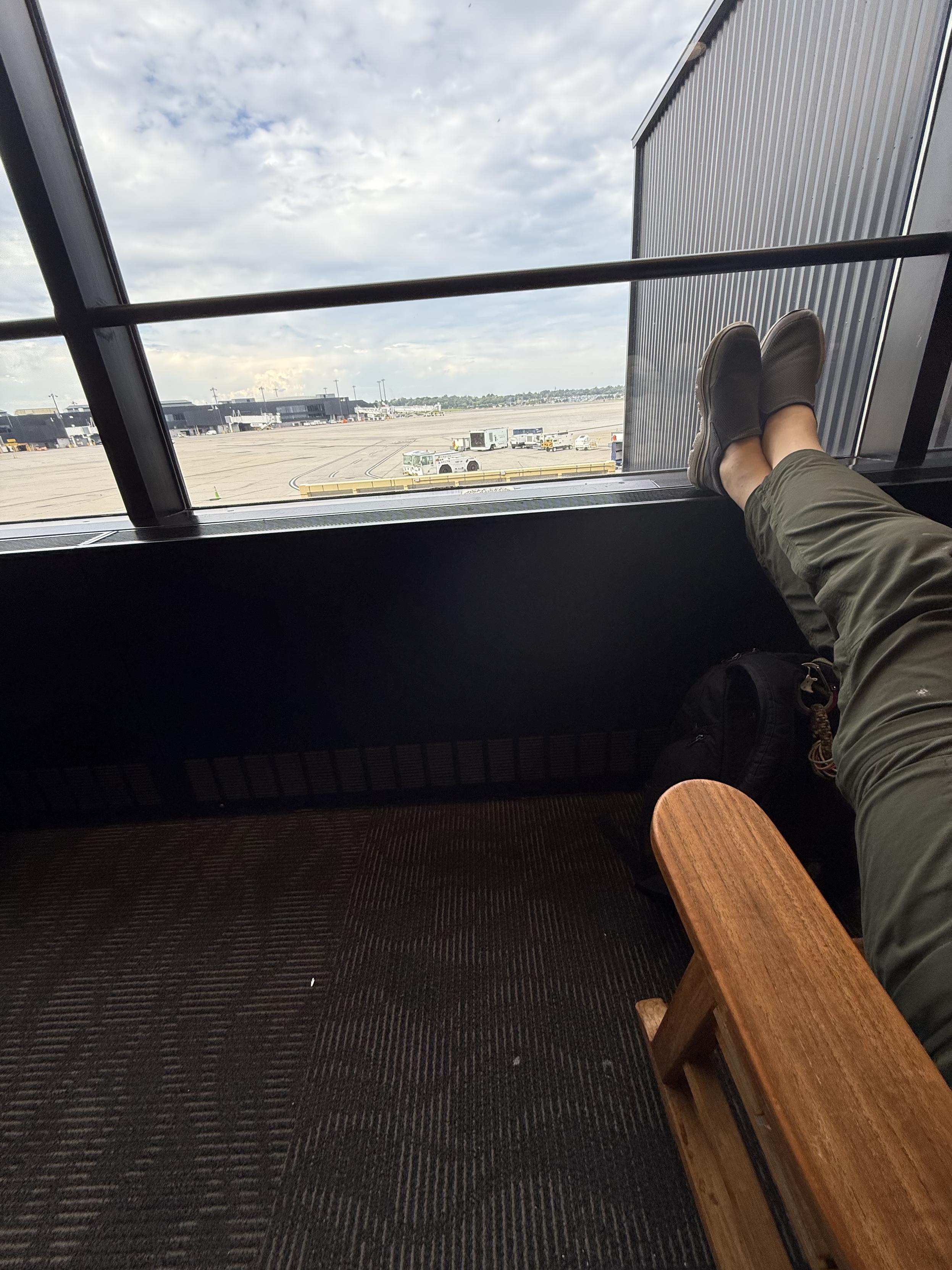 I don't know *why* BWI concourse D randomly has four rocking chairs facing the runway near gate D4, but it does, and I'm here for it.