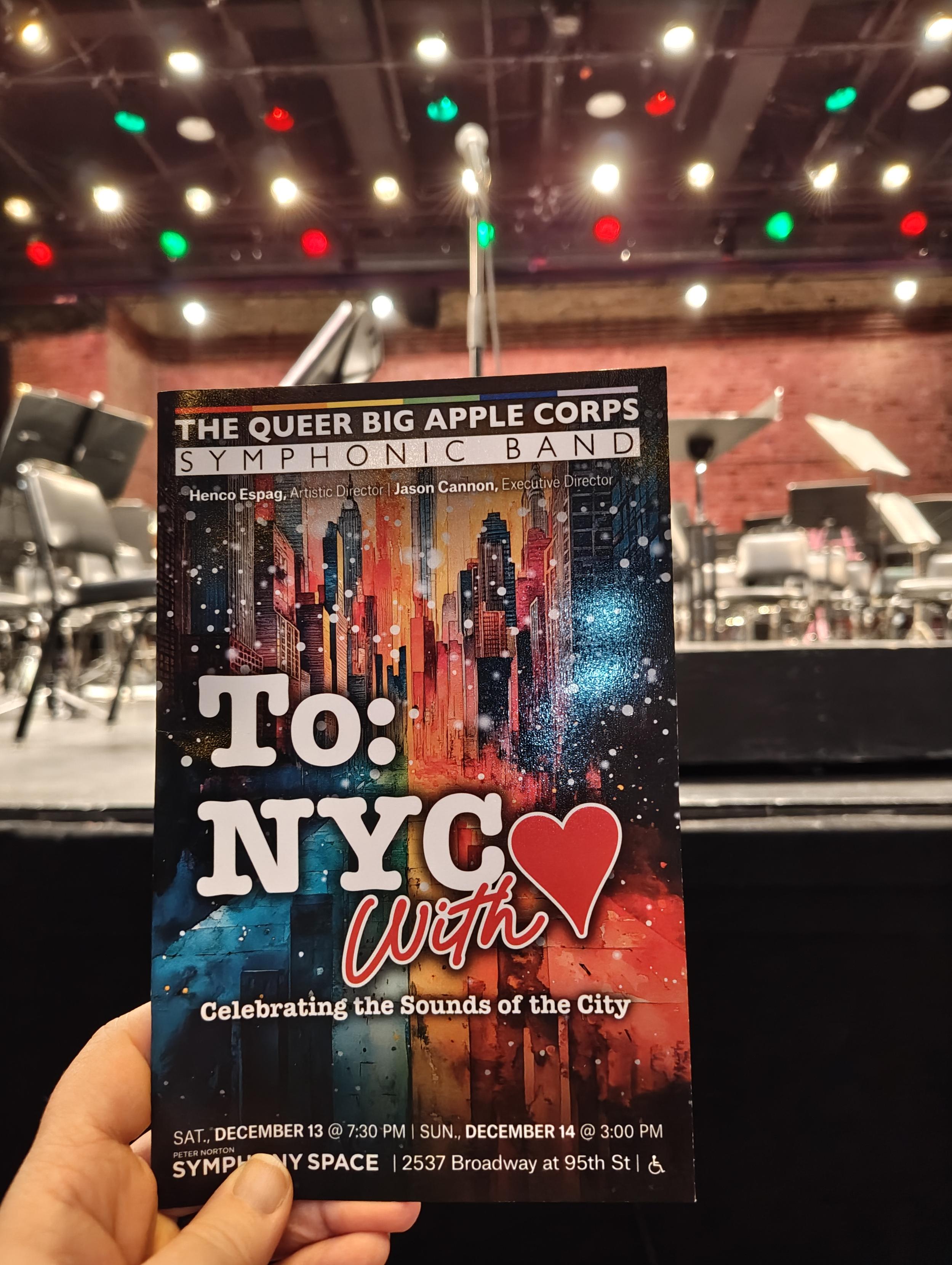 This is so fun and lively and inviting, and the family behind us is wildly uncomfortable with (1) music and (2) queers and is being unbelievably rude, loudly talking about how bored they are and falling asleep. They gave their child jingle bells to play along with the concert, in the second row. I don't even know why people leave their houses at all.