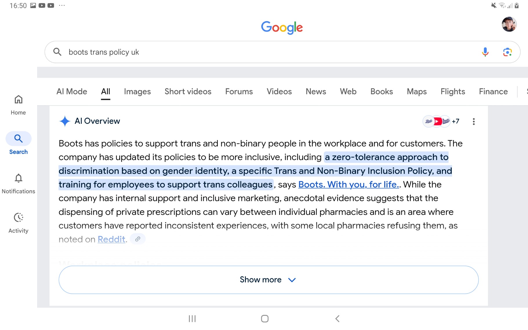 With them and me (wearing my Suffragette gloves & poppy and with my Love Darlington Nurses badge) in the shop at the same time, it was funny how it was ME who the assistant couldn't figure out what I was, male or female. And it was the TIF and her friend who were browsing the 'female' razors!