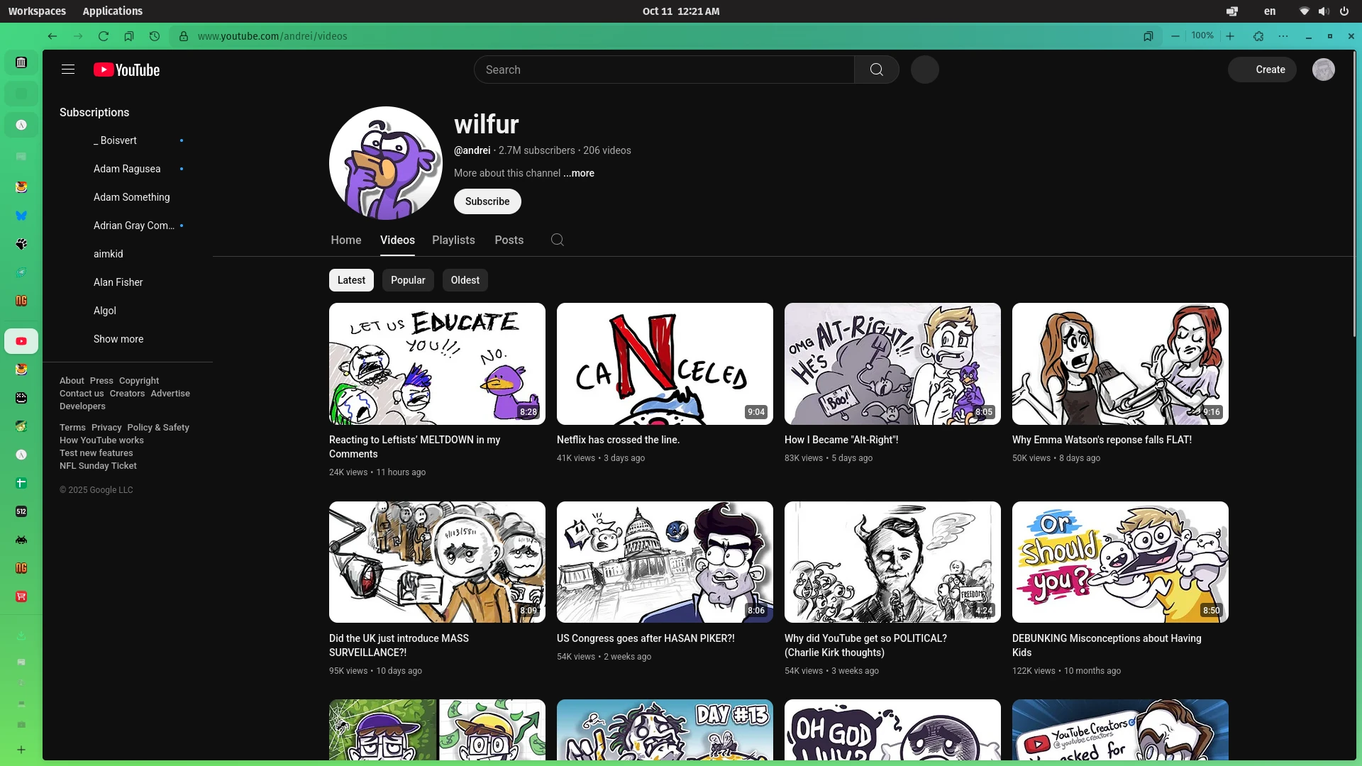 Channel I don't recognize at all is somehow in my subscriptions They post bullshit I don't ever wanna watch Check it further Turns out I used to watch him around five years ago, when he used to make marginally less shitty but still meaningless drama commentary Still not give a fuck about the older videos and appreciate that I don't watch shit like this anymore "Unsubscribe"Free yourselves from the algorithm, frens. You will appreciate being able to build your worldview based on your values and not your addictions, and you will appreciate finding others' cool works on your own accord rather than having it spoon-fed to you. :blobfoxtea_w_: