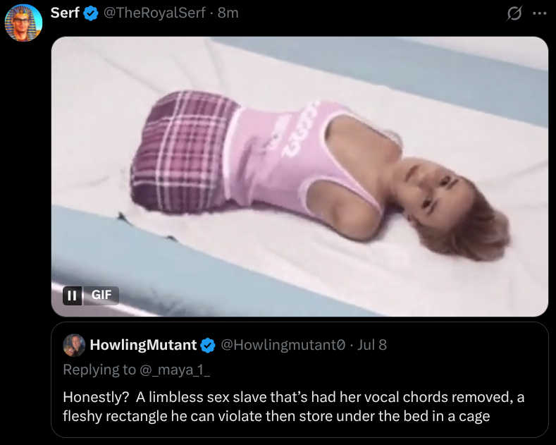 @NotoriousDOG @Humpleupagus @Captain80s @KingOfWhiteAmerica Whoa now! He's going to put her back under the bed when he's done, easy with the hate crime accusations there, pal. In conversation from poa.st permalink Attachments