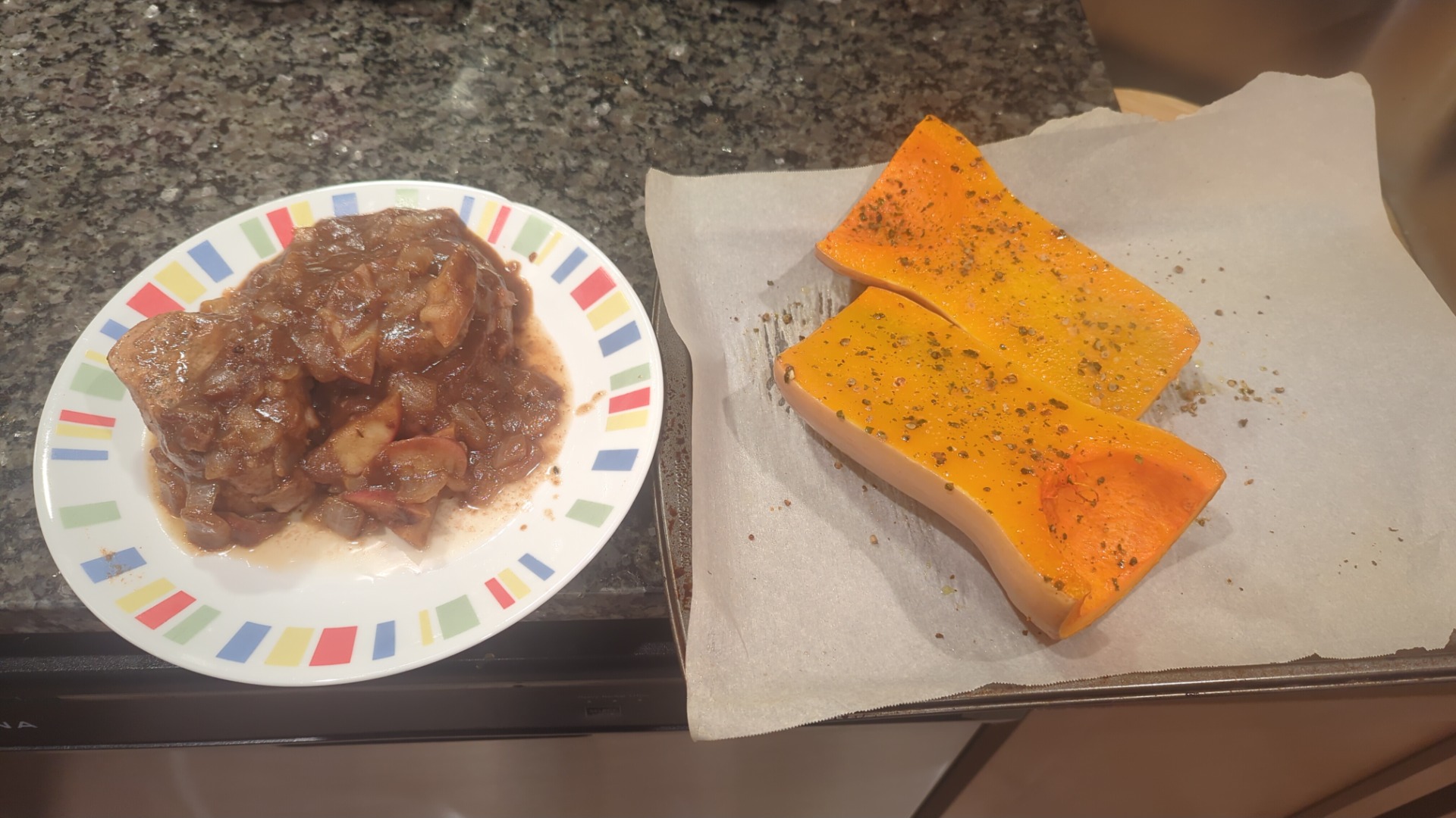 Big Fall Energy inbound. Roasted butternut squash and apple butter pork chops for dinner.