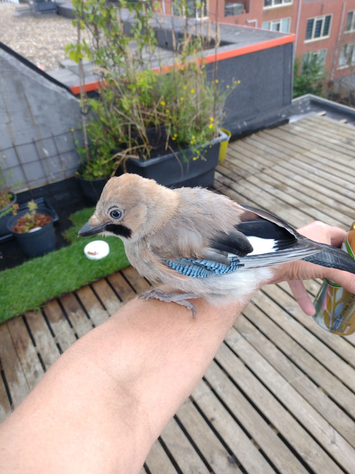 First contact it lands on my back while bend over working, flies up when I stand op. Sitting watching me, wants to sit on shoulder too. Leaves when fed. -