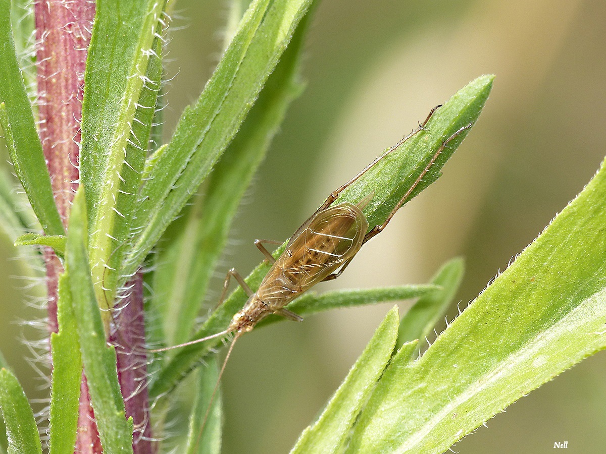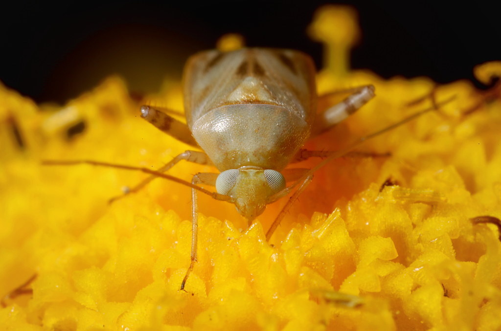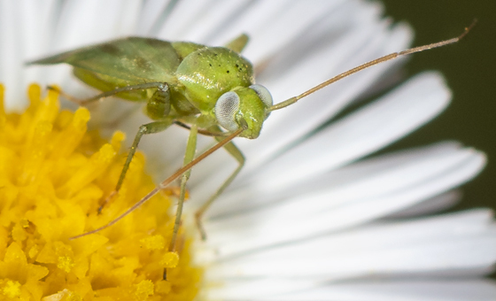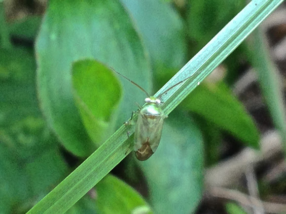 The broken-backed bug (Taylorilygus apicalis) can reach a length of about 4–5 millimetres. These bugs are usually light green, but the may also be tan, with mainly brown outer wings and brown flecks on the inner wings.