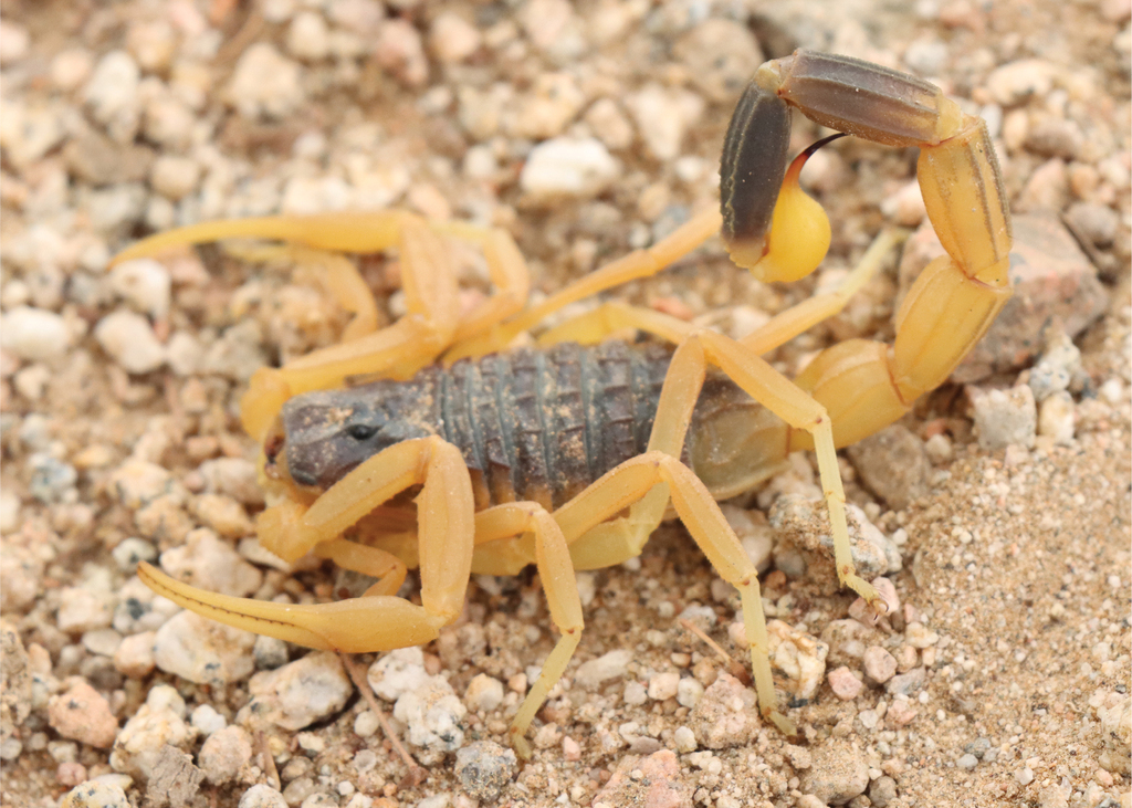They are yellow and grow to around one to three inches in length; the females are the larger gender. These scorpions are nocturnal, and are burrowing creatures, sometimes moving into holes vacated by other beings. Deathstalker scorpions hunt by lying in wait, then striking their prey very quickly.