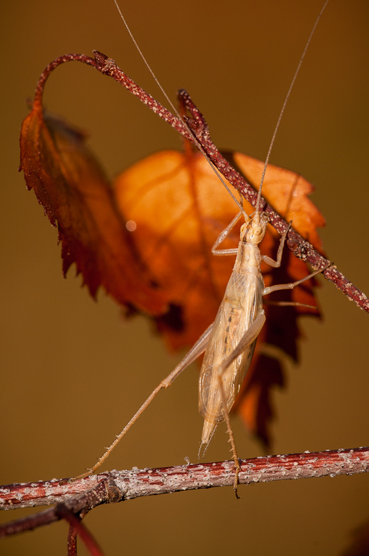 Oecanthus pellucens, commonly known as the clear-winged tree cricket, is a species of cricket belonging to the family Gryllidae. This insect is characterized by its almost transparent wings, which give it a distinct appearance compared to other crickets.