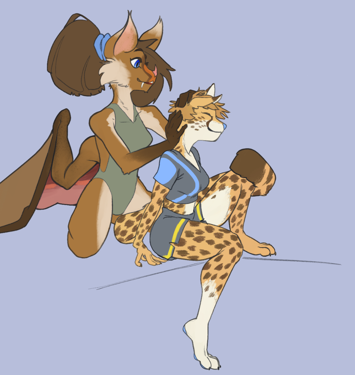@ic5146 's sona getting scritches from a bat. Their sonas's hair/head fluff looked really soft so I wanted to draw something about it.
