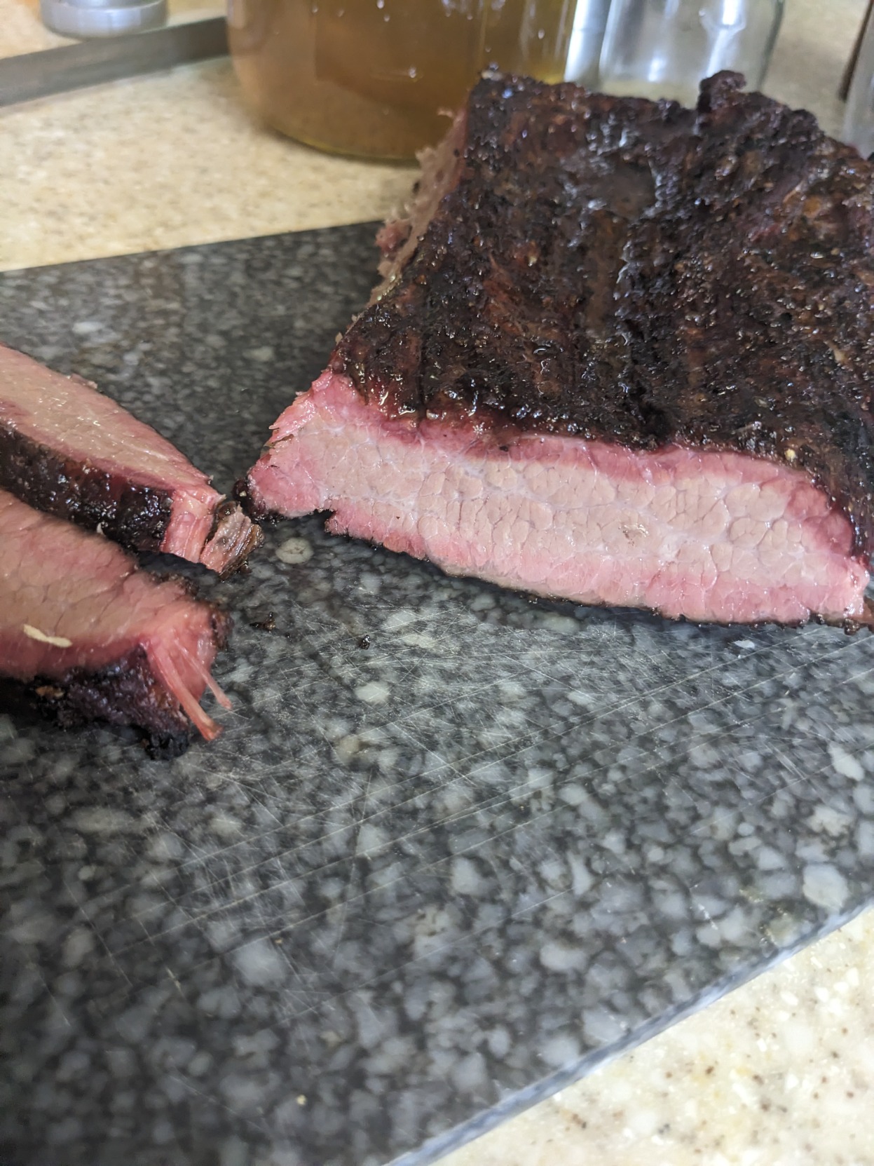 Full brisket broken down to two vac sealed pkgs after smoke.