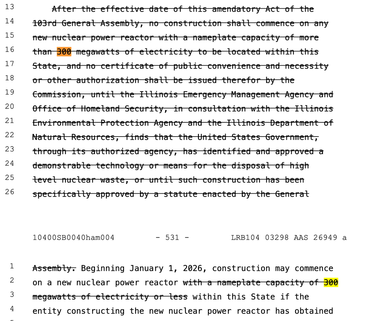 Legislation was introduced in the Illinois house of representatives tonight that would legalize large nuclear reactors in the state!