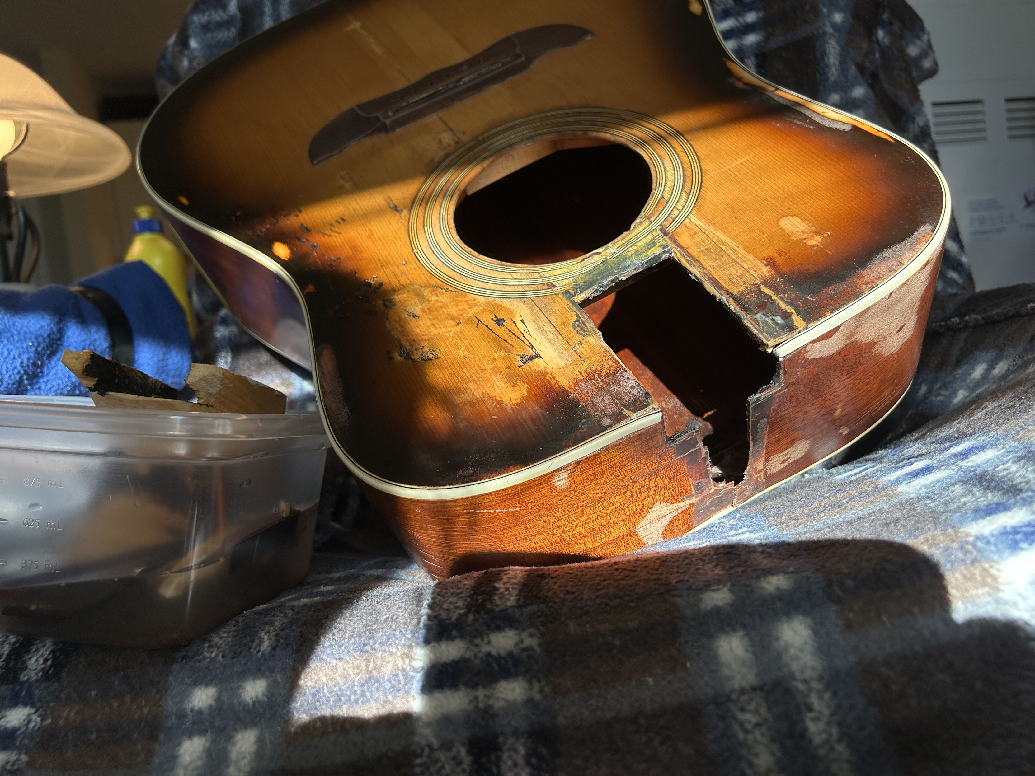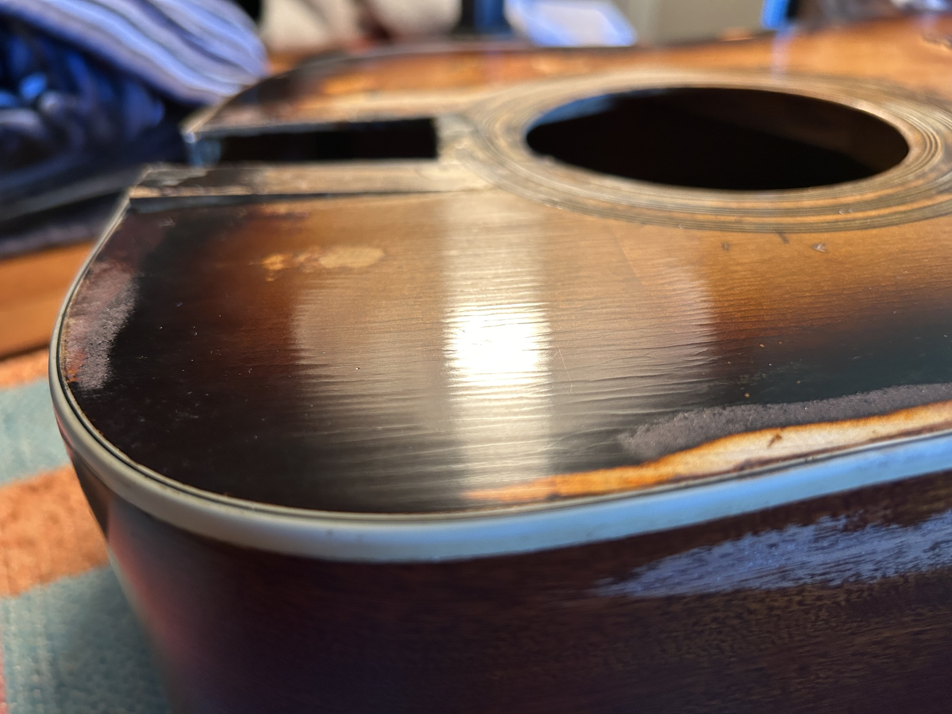 I still want to replace that ruined bit of the top, fix around the sound hole, it's like wet paper, got to do it for structure. 😈