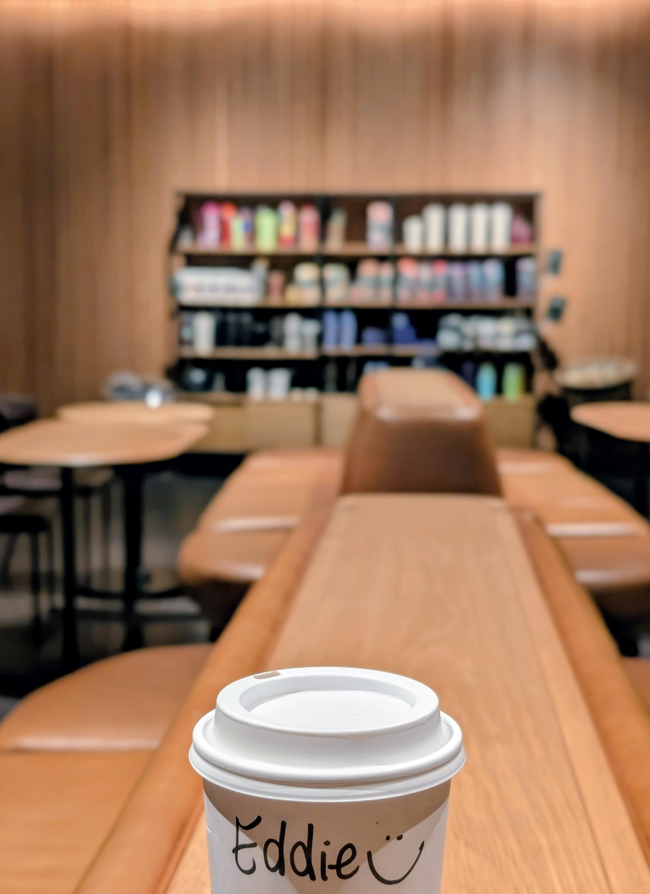 My daily trips to Starbucks are a thing of the past. The nearest is a half-hour from home, and I'm on a new, more frugal budget. Drove to town tonight to pick up some groceries and a few odds and ends and figured what the heck-- live a little! :awesome: