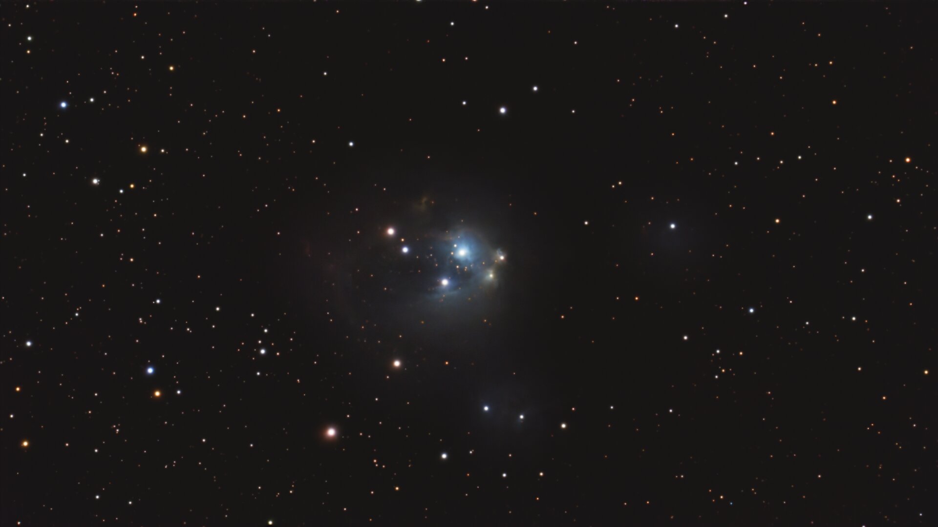 Another pic that's been in the backlog for a while. This is NGC 7139, a.k.a., the Small Cluster Nebula or the Rosebud Nebula. This is a reflection nebula about 3,300 light-years away, and captured in "true color".
