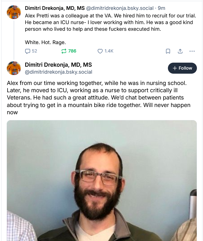 I'll post a link for those who wish to go there but this is said to be the video taken by the woman in pink jacket who was close to the murder of Alex Pretti this morning https://bsky.app/profile/alexip718.com/post/3md6uyjftvc2f