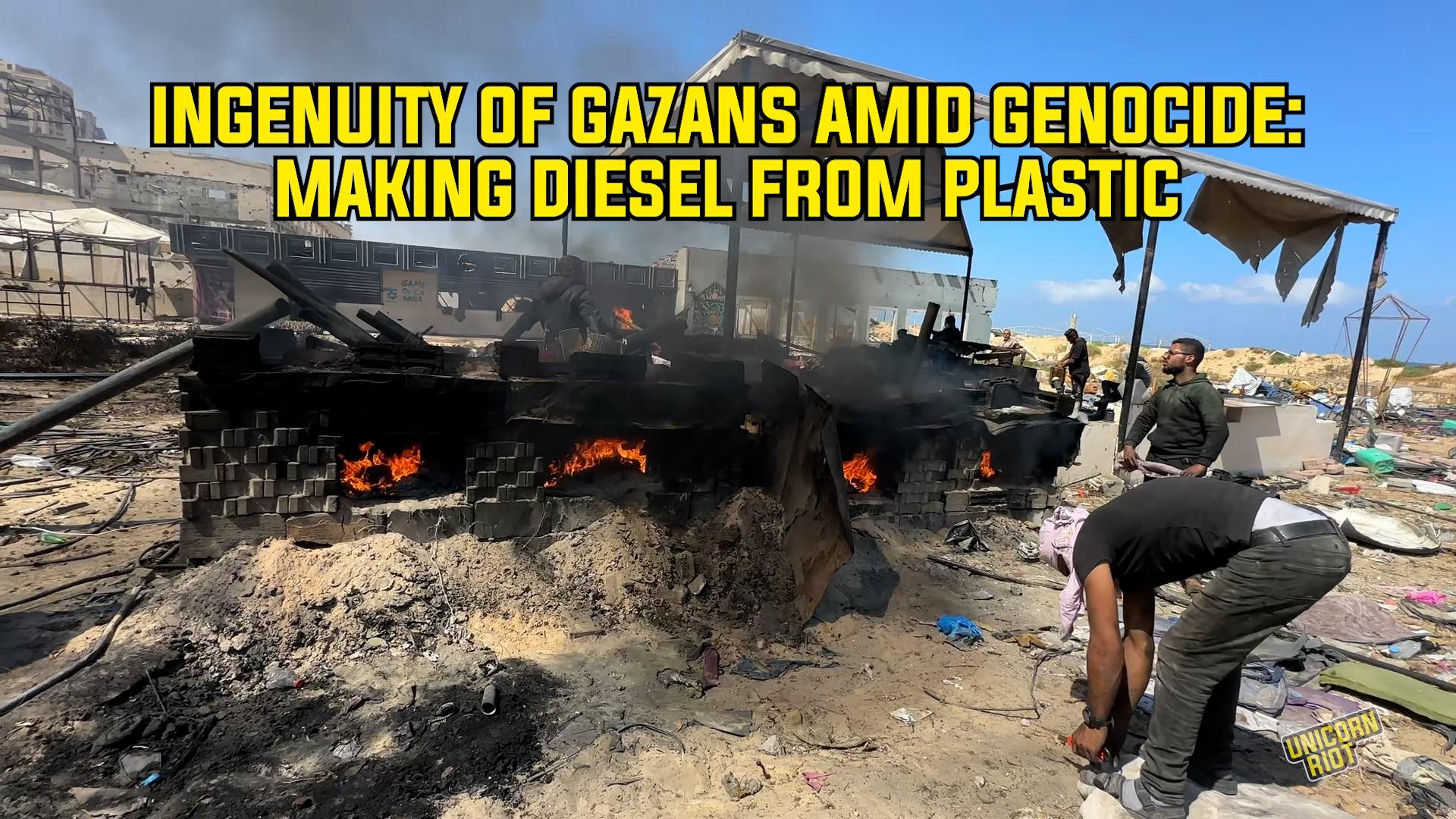 In the west side of war-torn Gaza City, Unicorn Riot was given a tour of the makeshift processing center where plastic waste is melted into diesel.